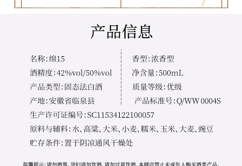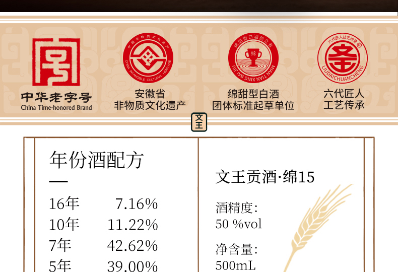 文王贡酒 50度绵15 真年份白酒 婚喜宴用酒 中高端商务接待酒