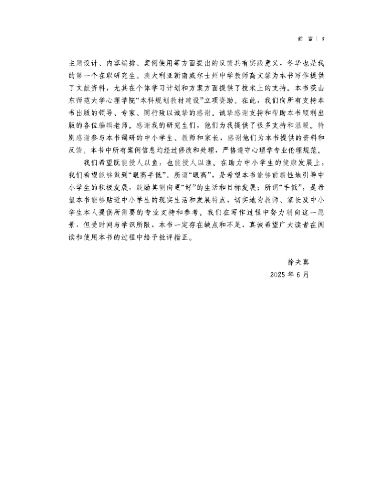 本书凝聚了作者20余年对中小学生心理健康教育的研究、教 学、培训、咨询和督导经验,基于积极青少年发展观, 从积极视角对中小学生的问题行为进行重新定义,帮助教师既能够看到问题行为的表现,又能看到其背后学生的意愿,引导学生在解决问题的过程中获得效能感,而不仅仅是预防和消除问题行为本身。同时,本书注重发掘中小学生具备的内、外部资源,培育其积极品质,促进中小学生健康成长。本书既可以为中小学心理教师、班主任提供参考,也可供家长及心理学爱好者阅读和学习。