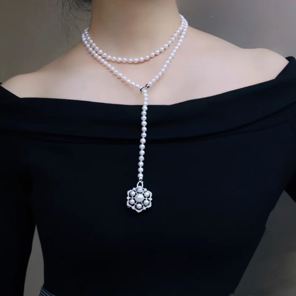 【库存极少】Manreya玛芮雅雪绒花淡水珍珠毛衣链