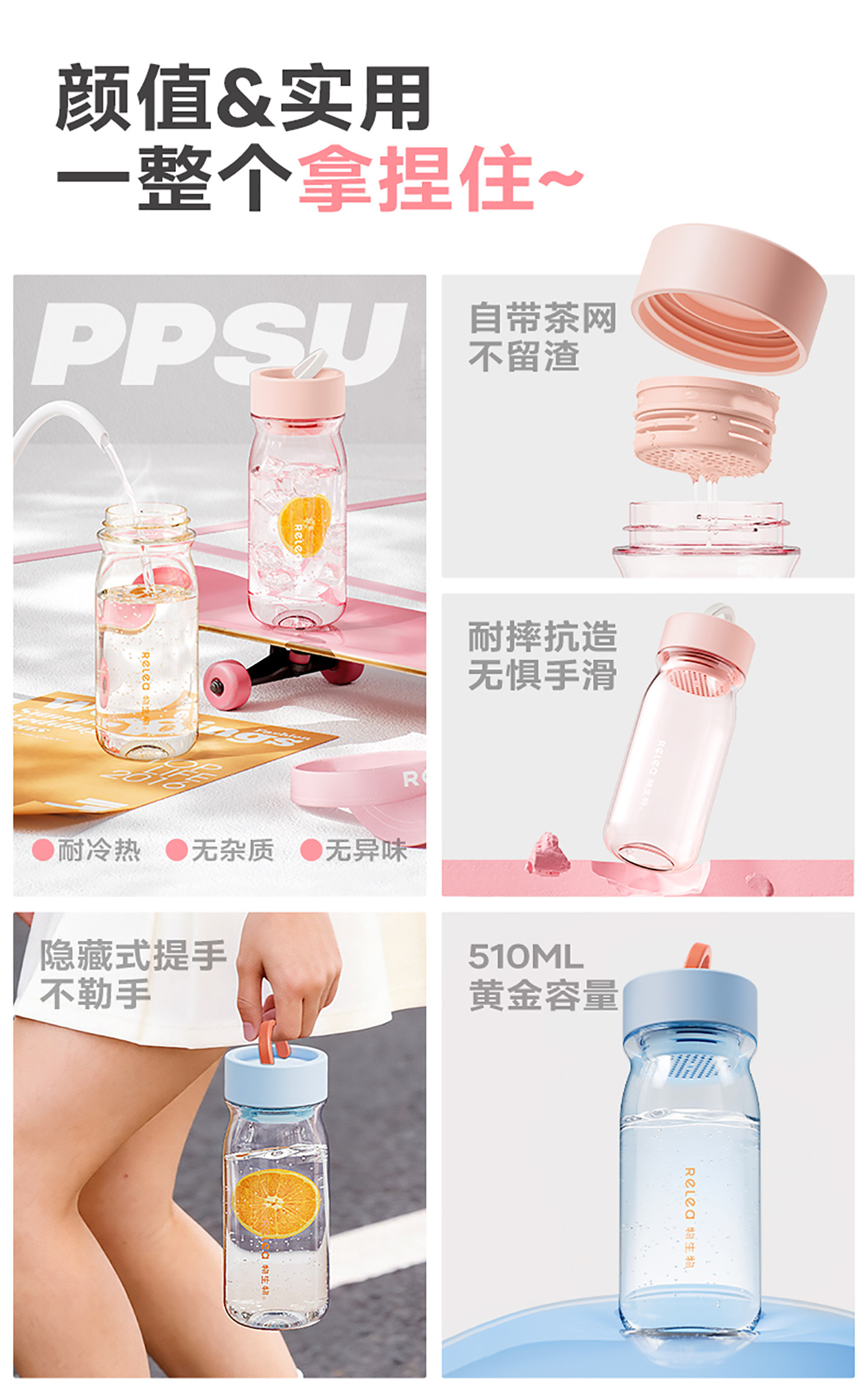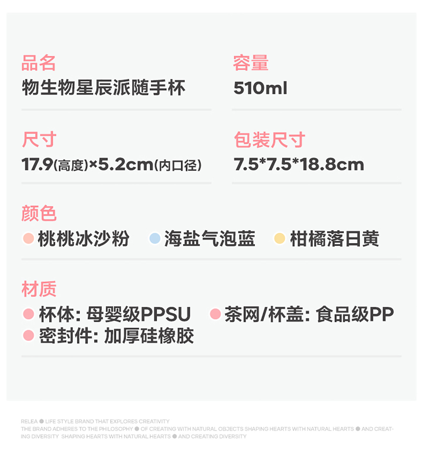 物生物星辰派PPSU食品级耐高温随手杯510ml(冰沙粉)/(气泡蓝)