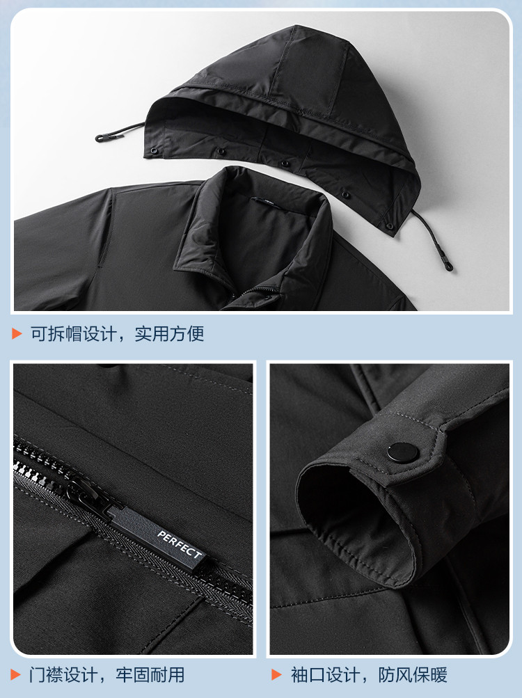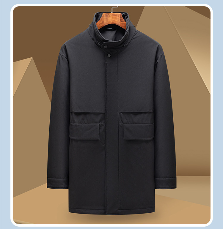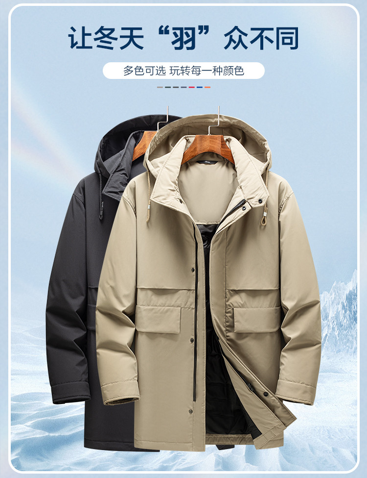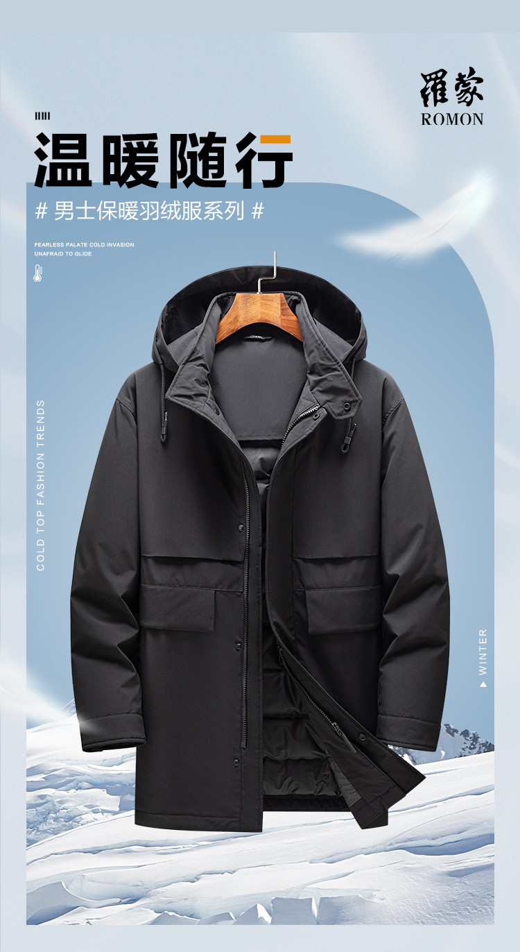 【85鸭绒】罗蒙秋冬中长款羽绒服外套男士休闲可拆卸帽子保暖羽绒服男外套