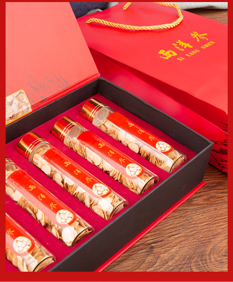 西洋参100克6瓶玻璃礼盒装送礼 六管花旗参软枝片批发一件代发