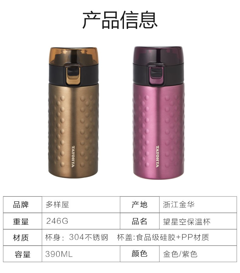 【专柜多样屋】户外大容量便携保温/保冷单手弹盖水杯情侣杯 望星空杯/紫色
