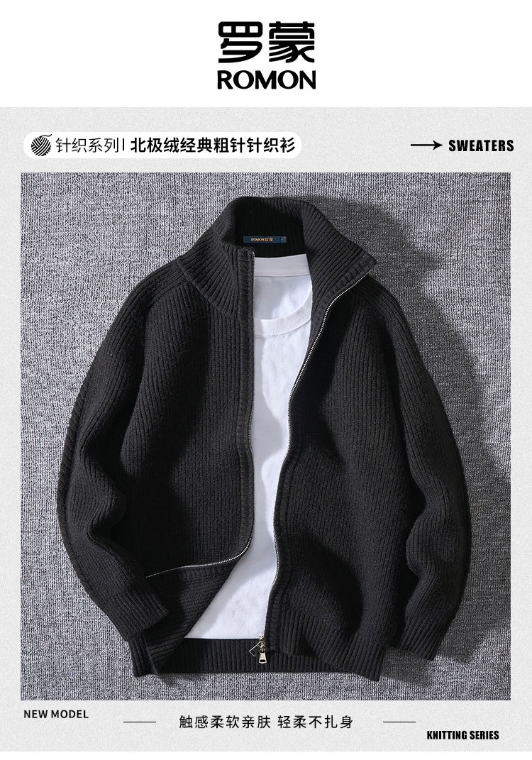 【北极绒纱线】罗蒙美式粗犷针织外套男秋冬毛衣男士外套针织衫男