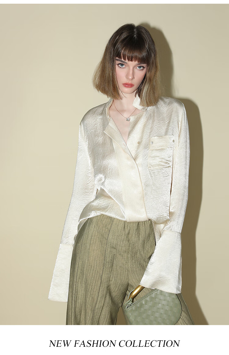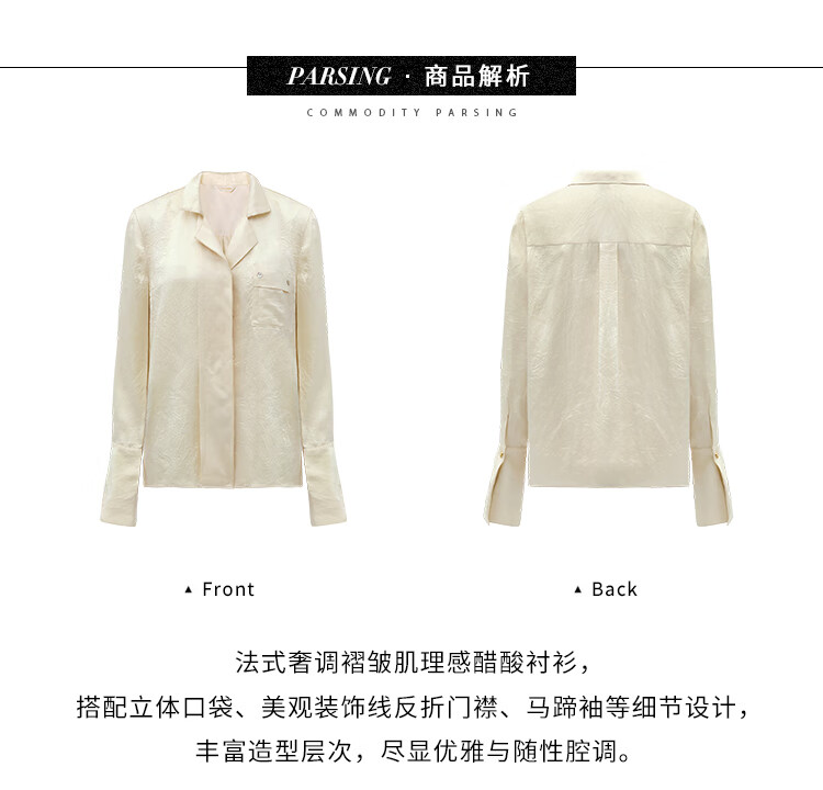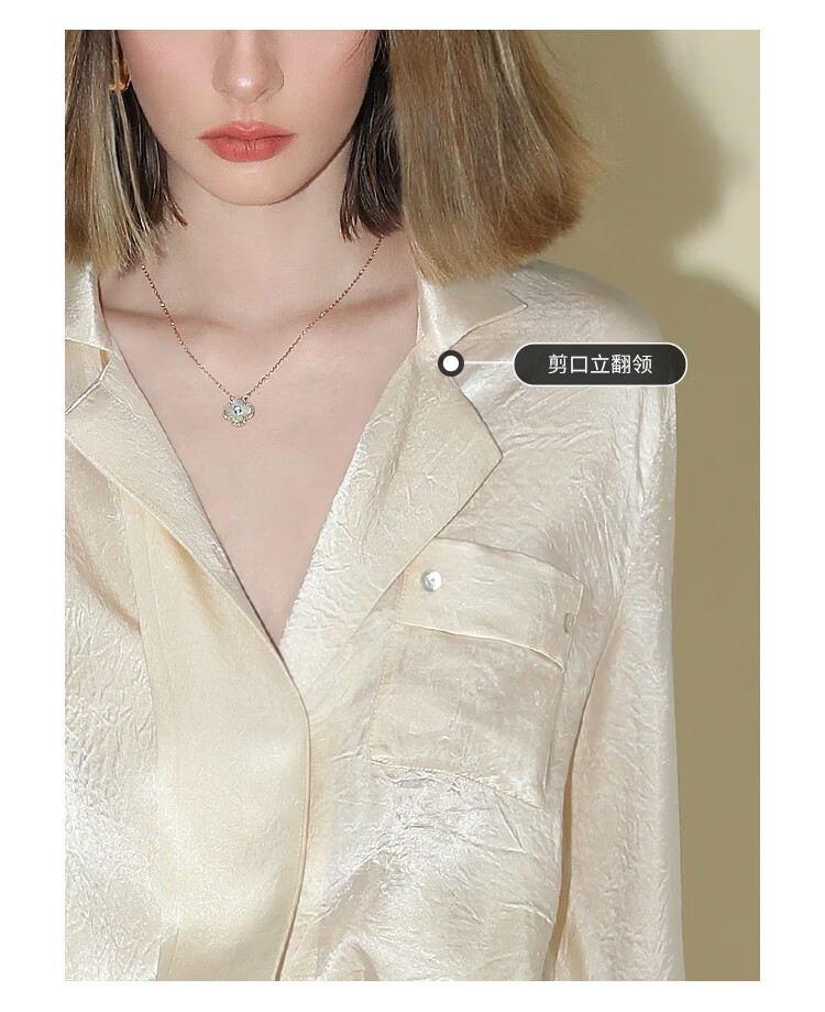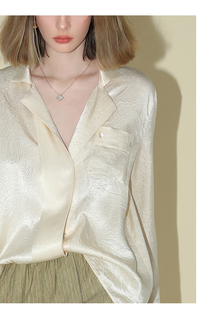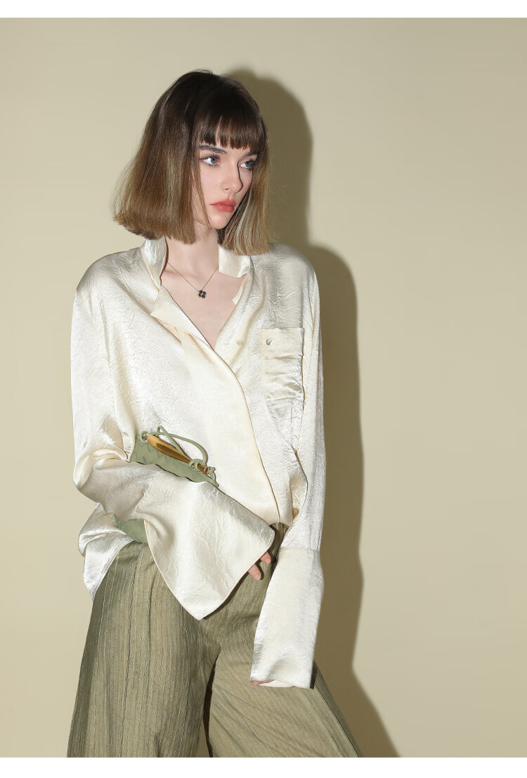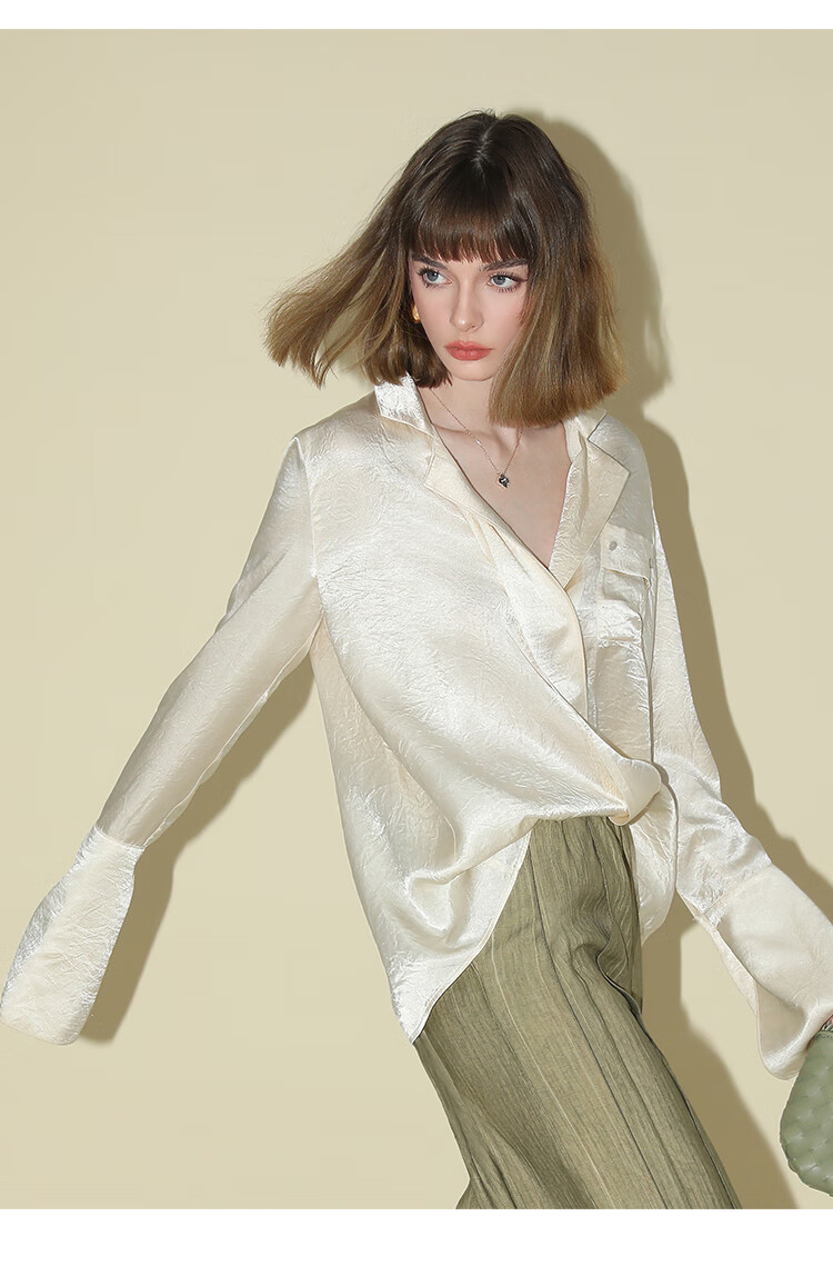 COCOBELLA[醋酸]丝光褶皱肌理丝滑垂坠马蹄袖衬衫SR7011