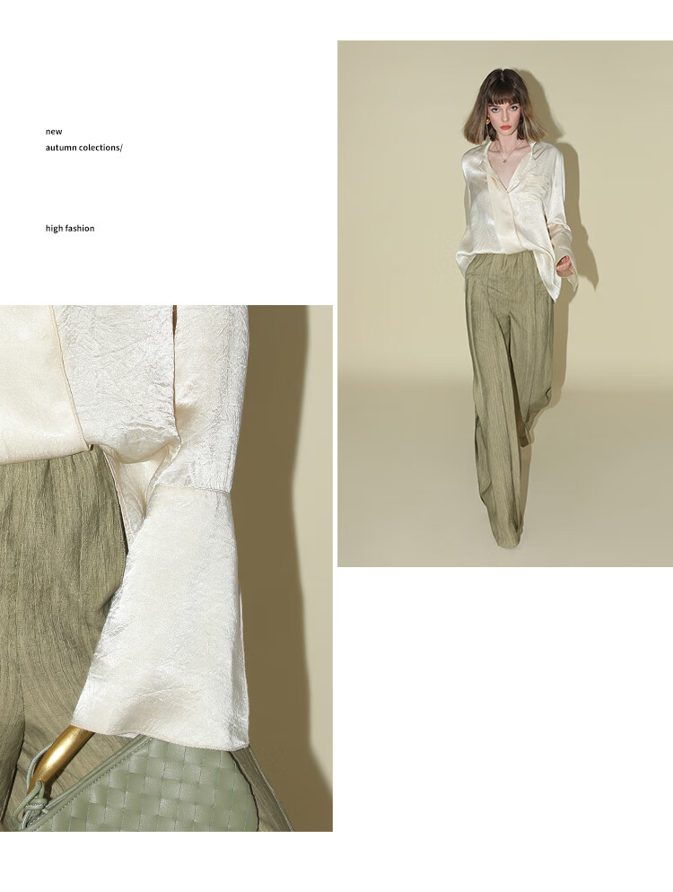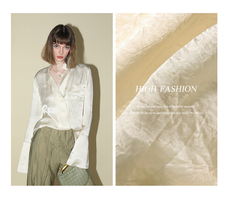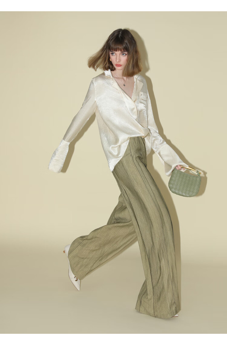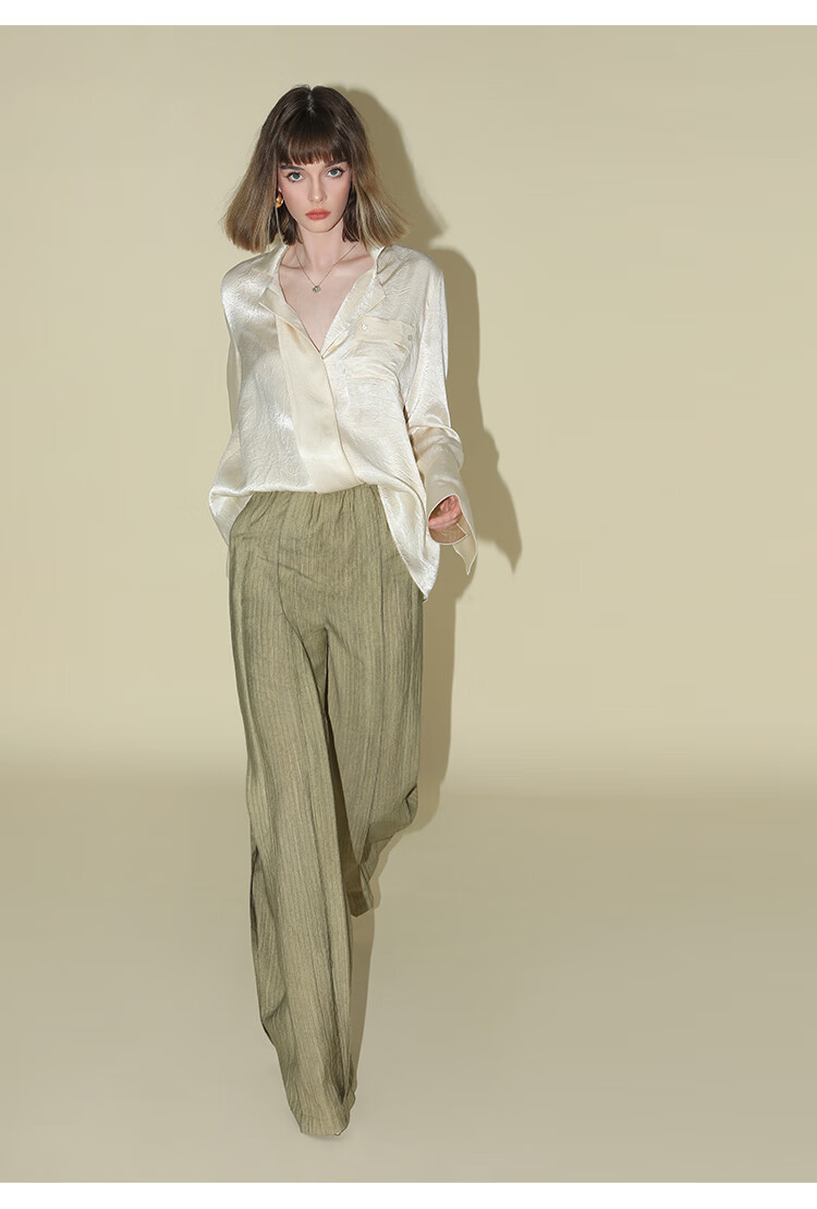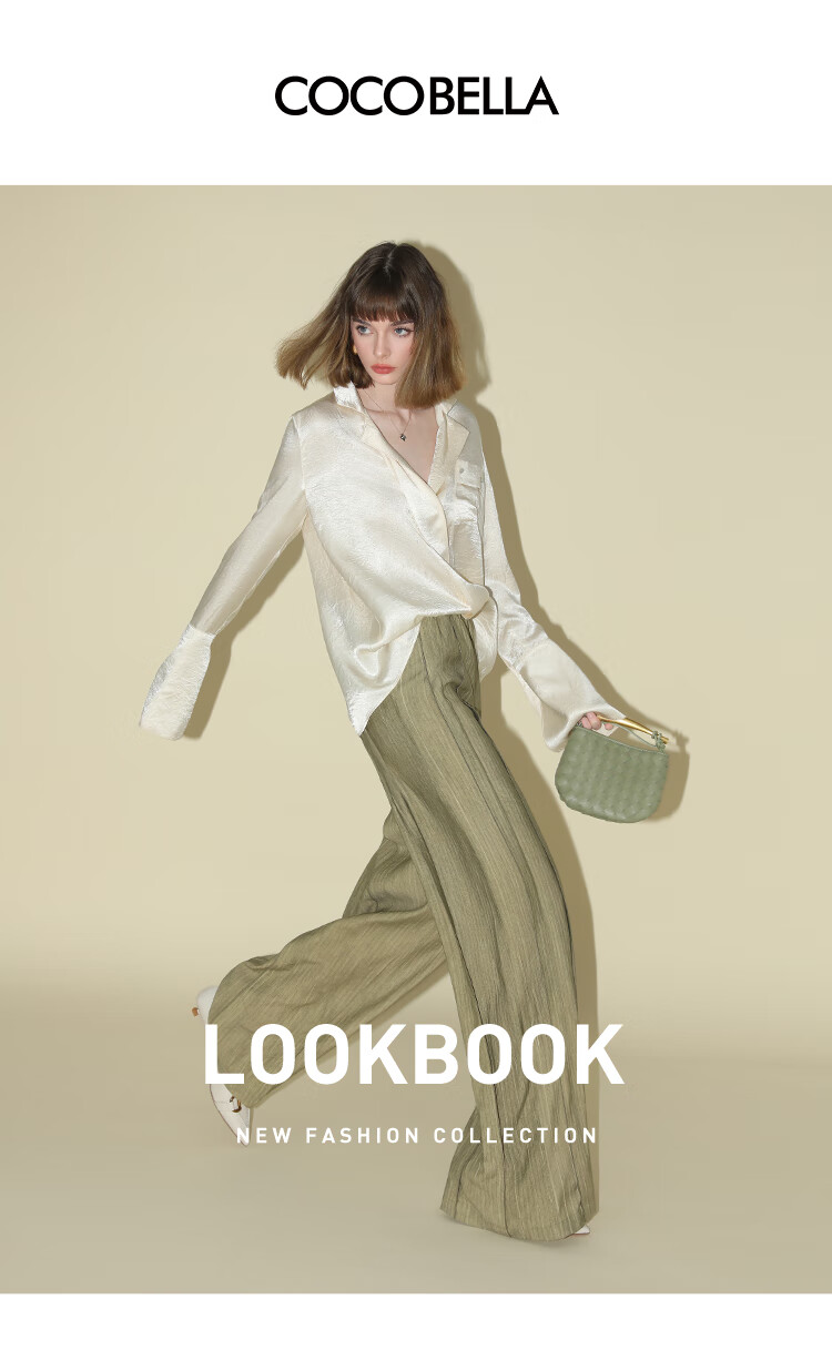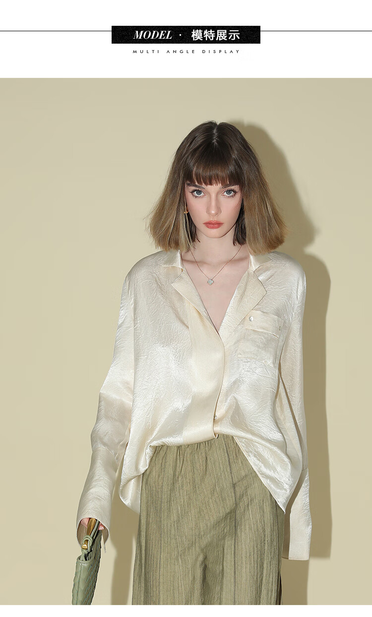 COCOBELLA[醋酸]丝光褶皱肌理丝滑垂坠马蹄袖衬衫SR7011