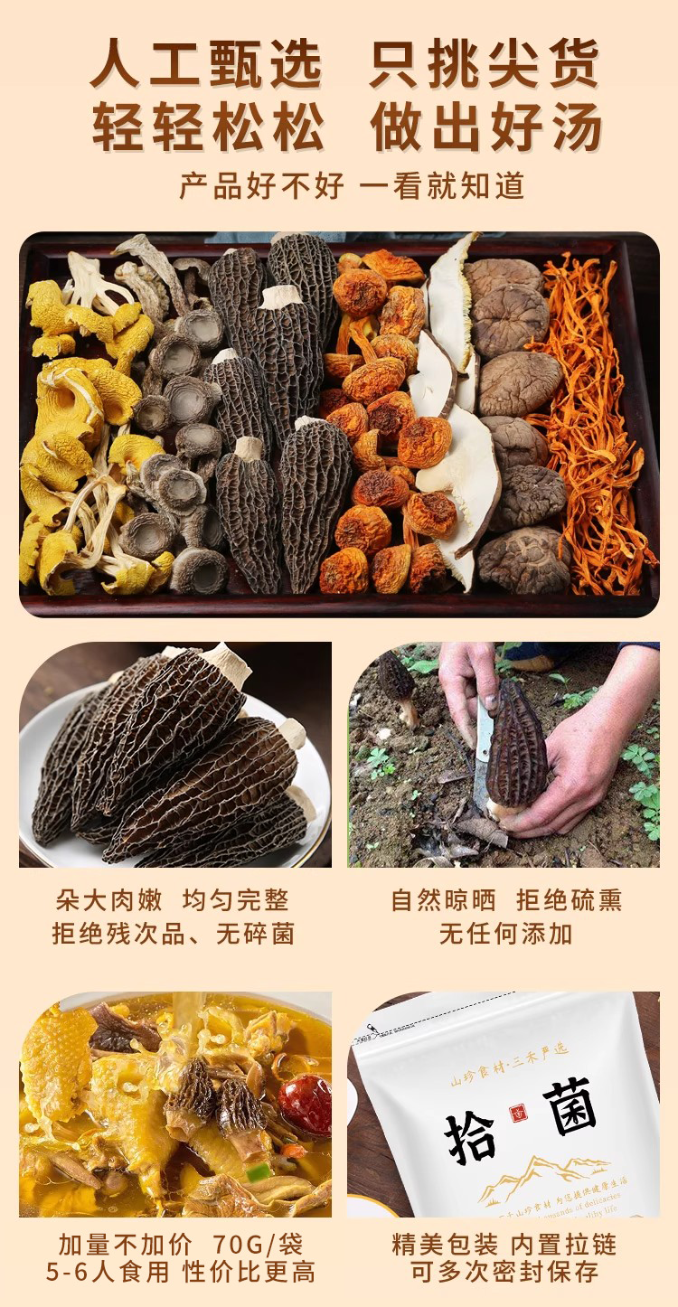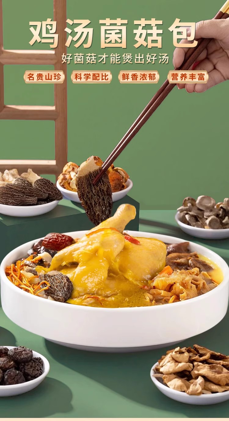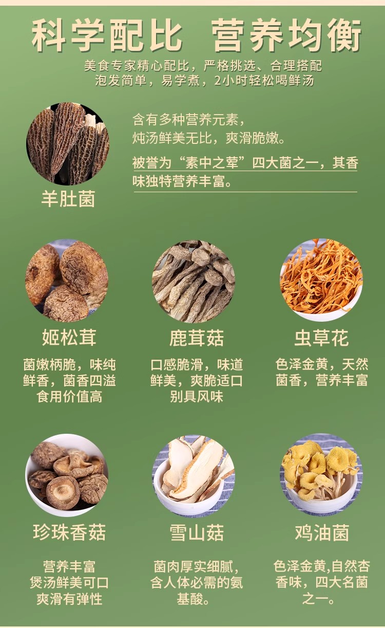 拾菌每日汤包#七彩菌汤包,虫草花、鹿茸菇、鸡油菌、雪山菇、珍珠香菇、姬松茸、羊肚菌,不含红枣枸杞充数 滋补必备