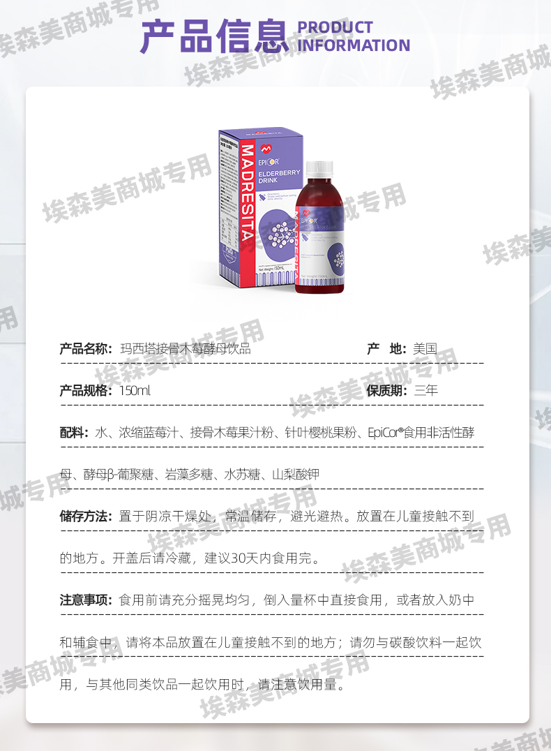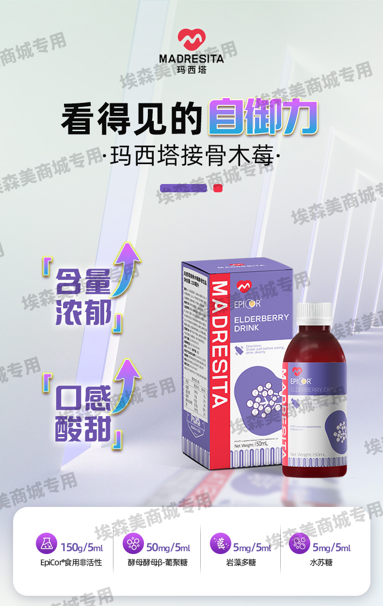 【特惠活动】玛西塔接骨木莓酵母饮品酵母β-葡聚糖酸甜可口150ml