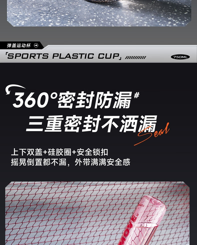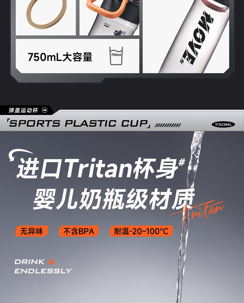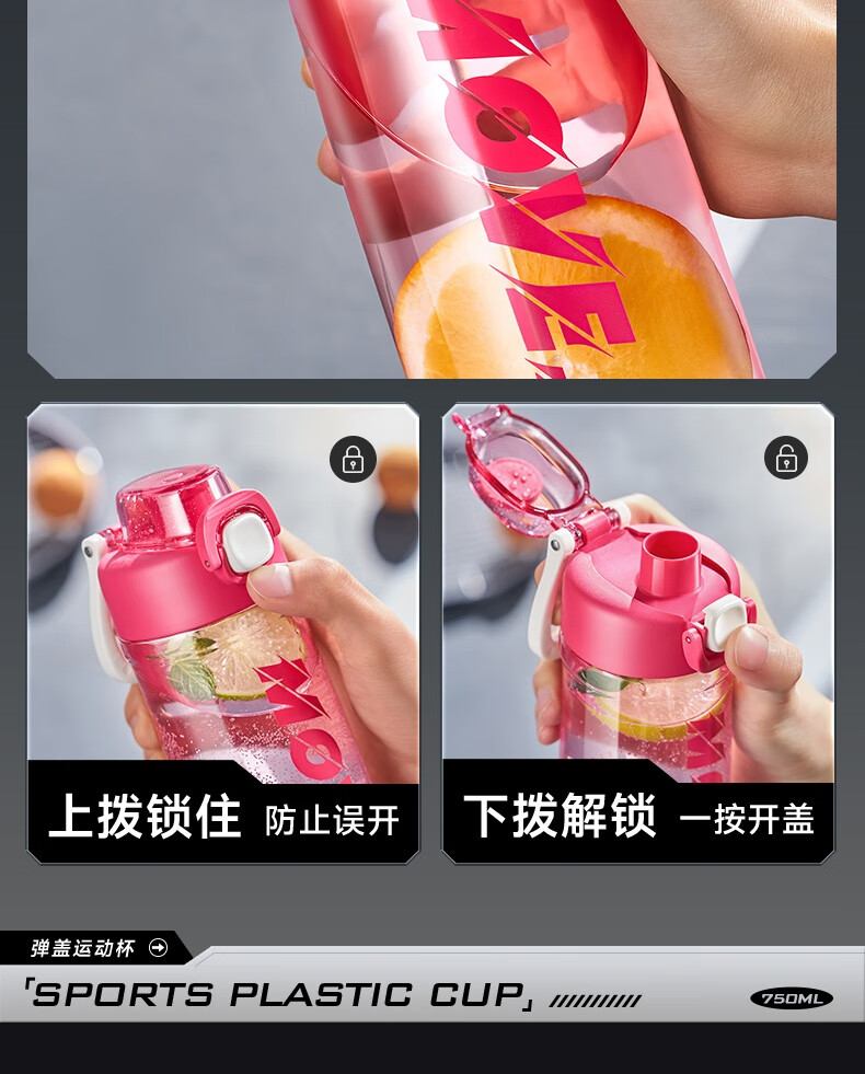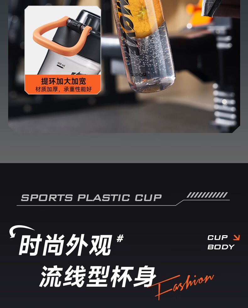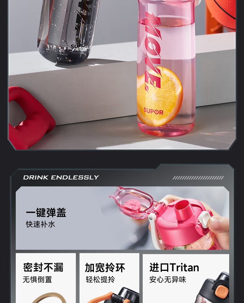 苏泊尔(SUPOR) 弹盖运动塑料杯tritan材质水杯大容量便携男女学生杯子KCP75LY20