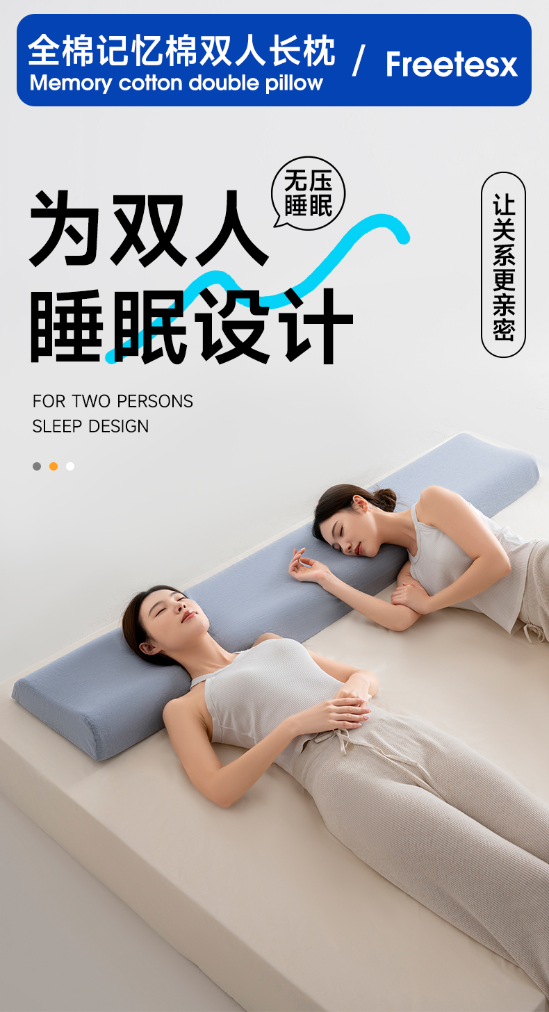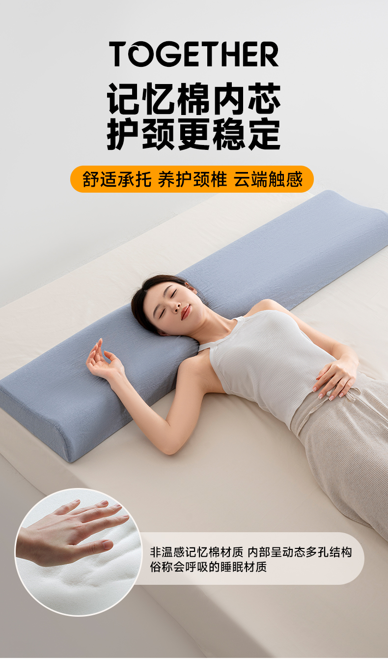 自然醒全棉记忆棉曲线双人长枕纯棉水洗棉记忆棉双人枕头波浪曲线双人长枕芯XK