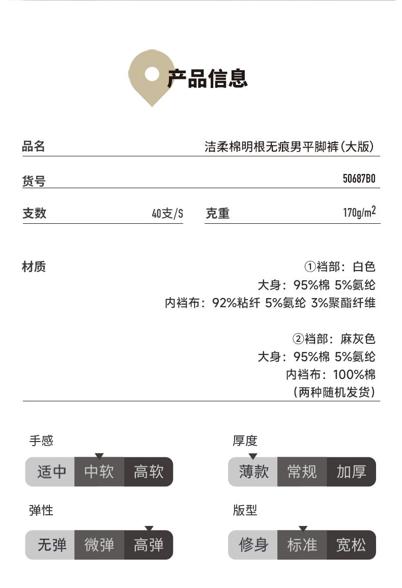 Threegun三枪 【洁柔棉】明根男士无痕大版平角短裤四角内裤(1条装)-50687B031