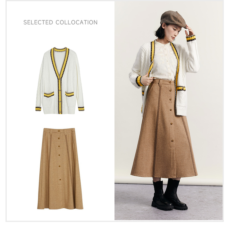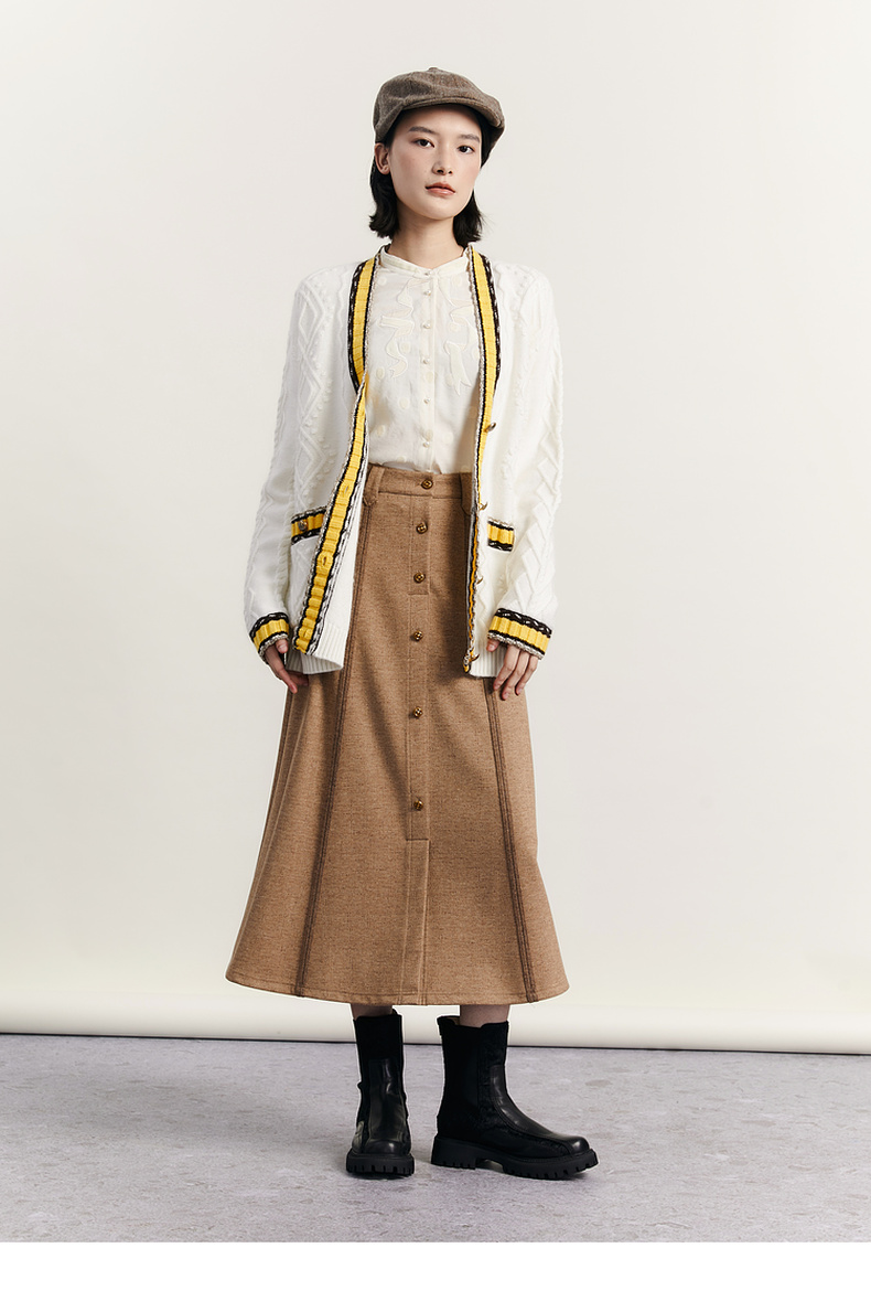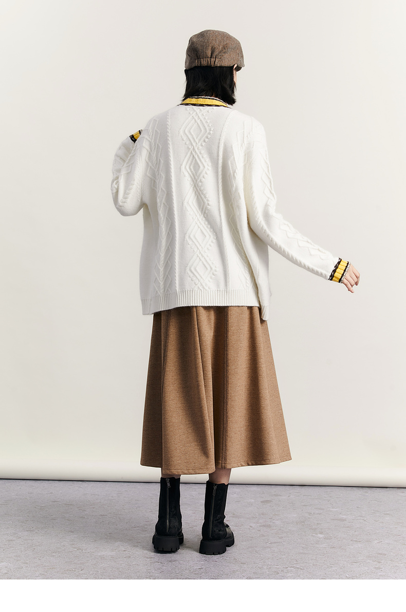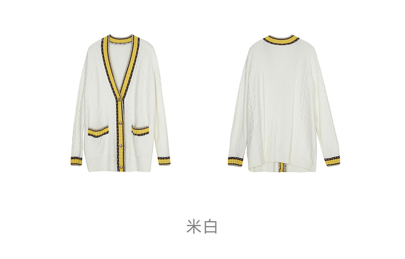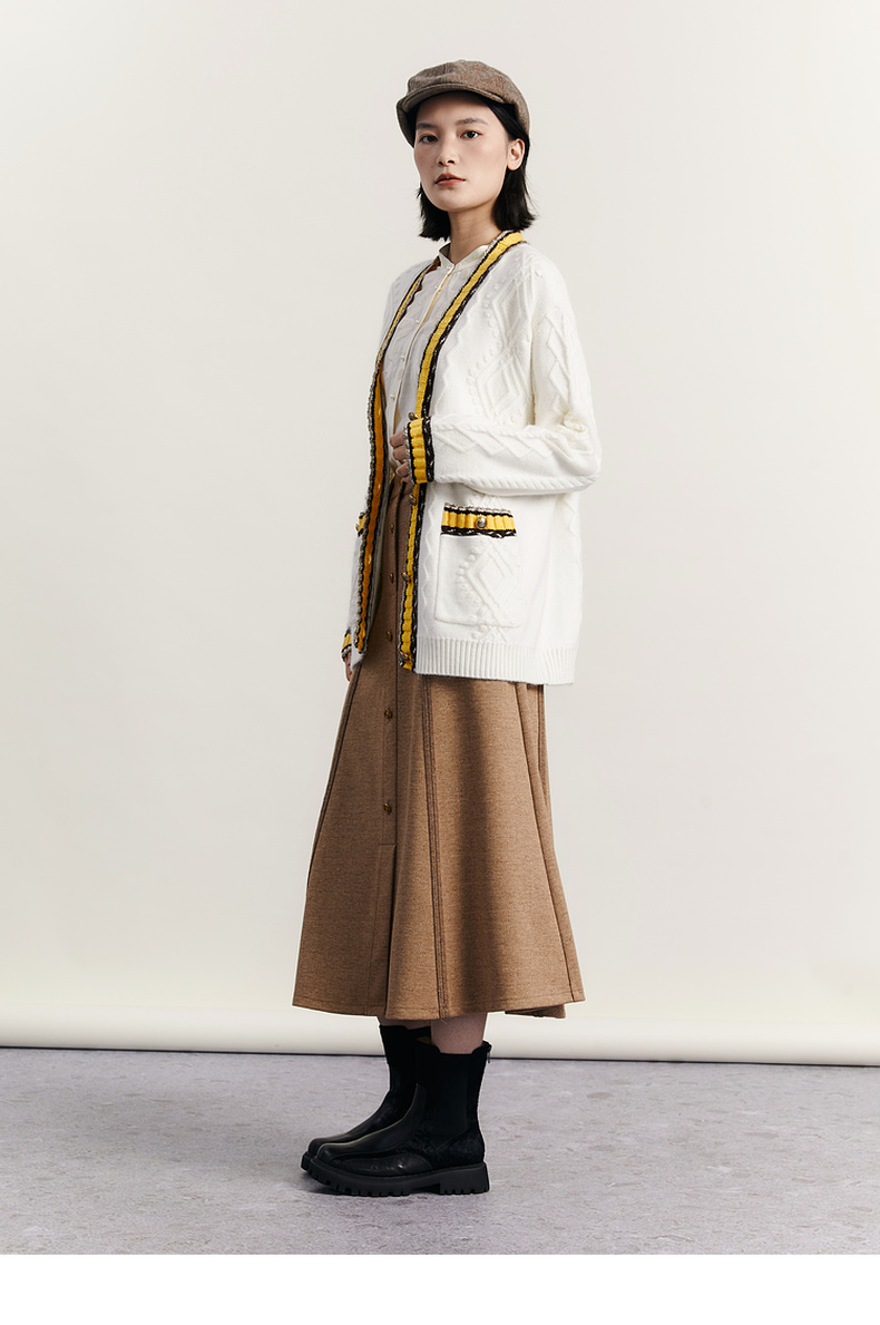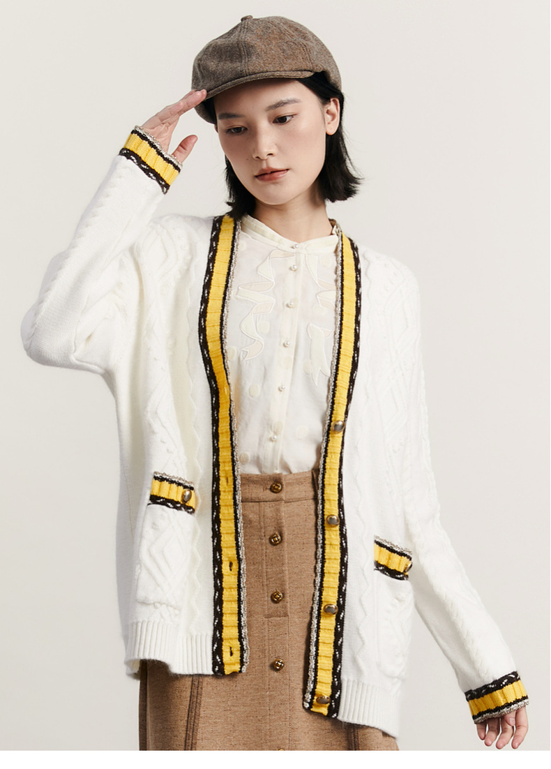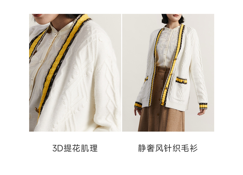 谜底针织开衫女2023冬季新款学院风提花百搭中长款毛衫234MZ1870