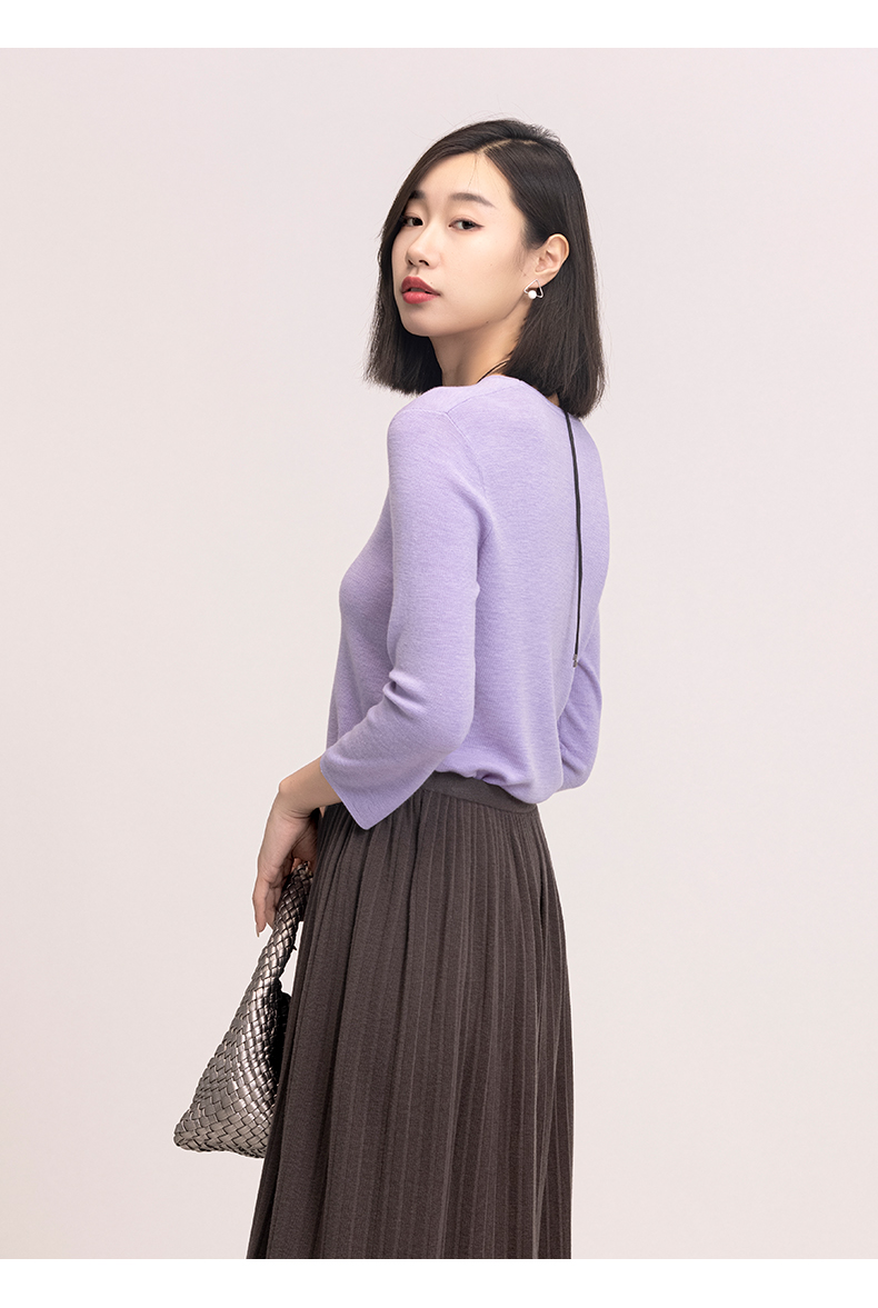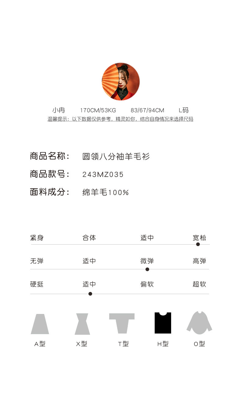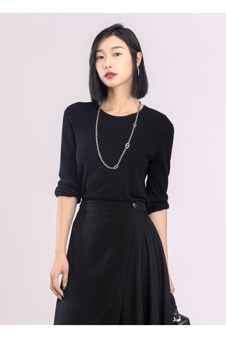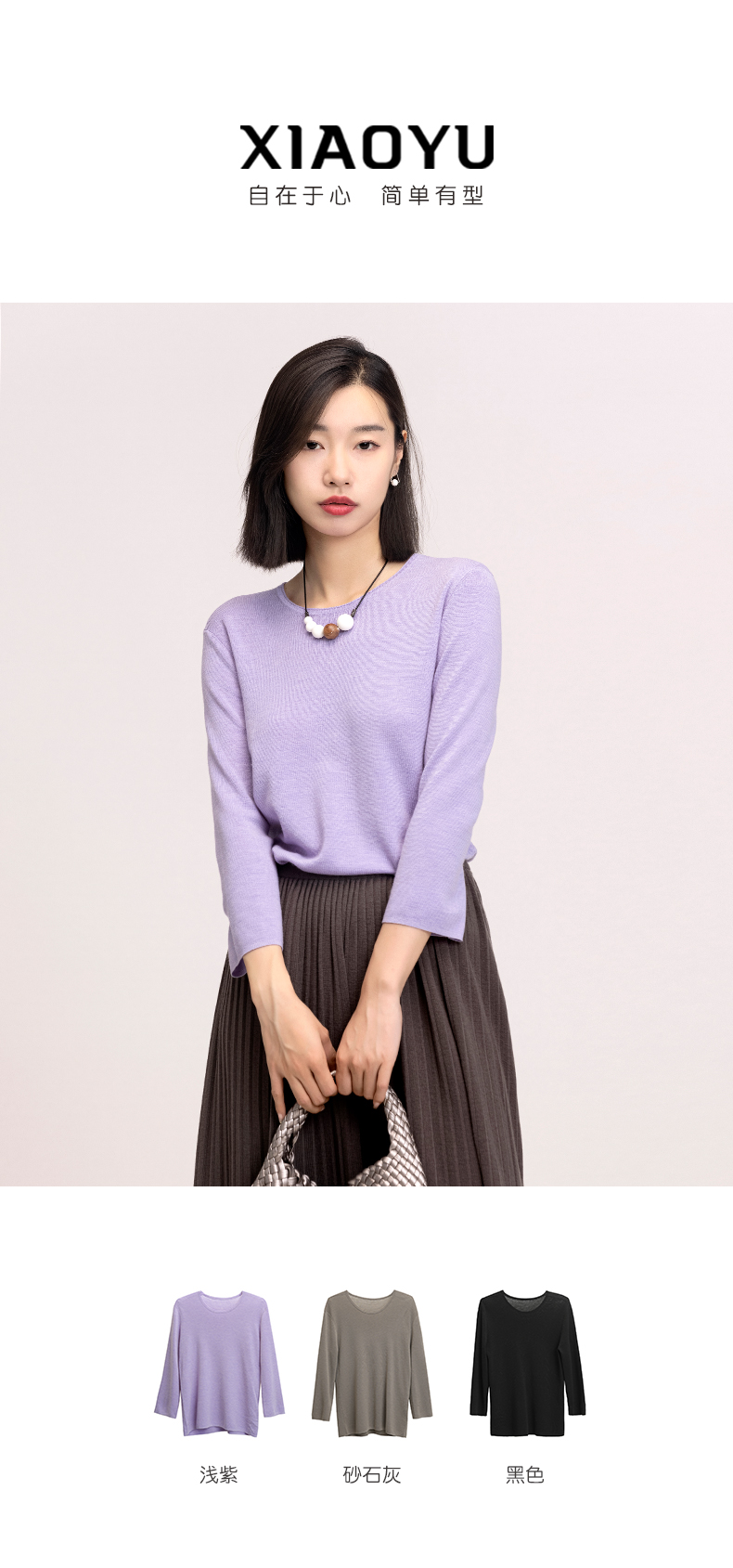 XIAOYU|圆领八分袖羊毛衫243MZ035
