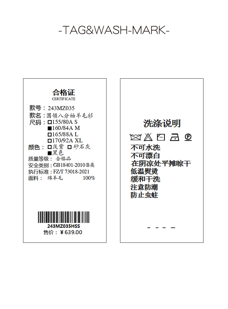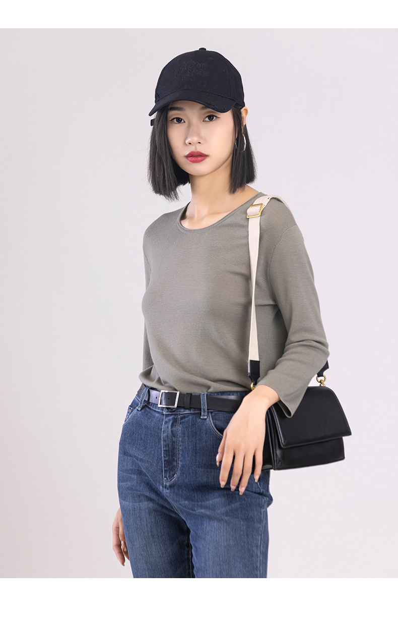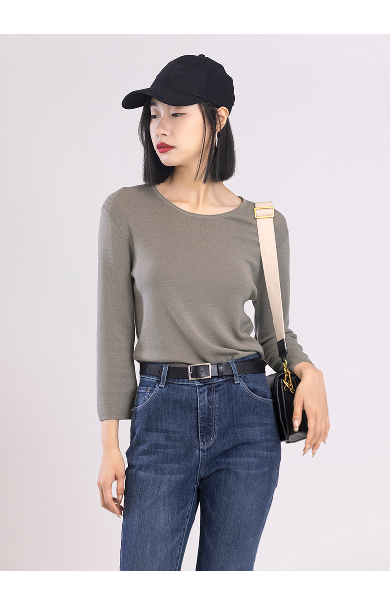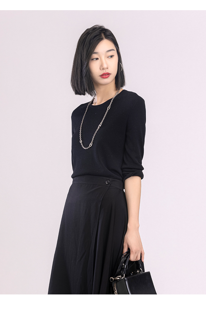 XIAOYU|圆领八分袖羊毛衫243MZ035