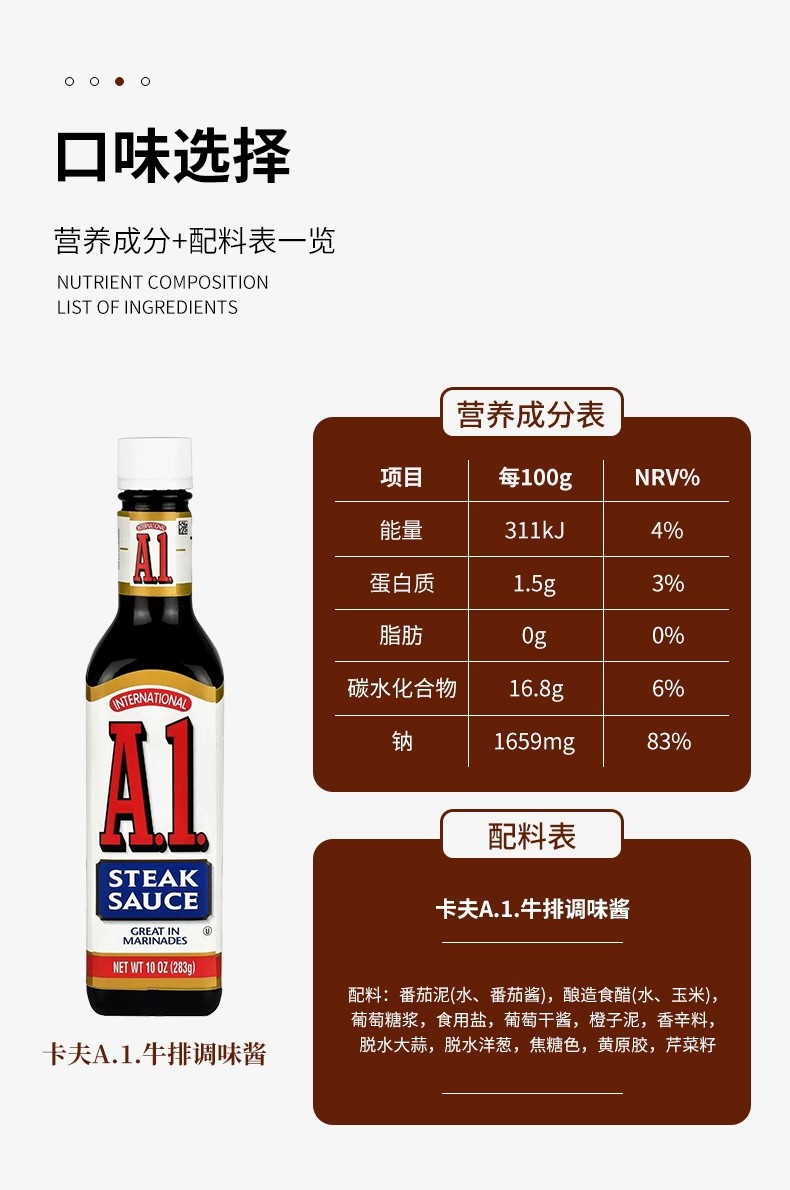 【中欧班列精选2瓶】美国进口 卡夫A1牛排调味酱 283g*2 SHRW