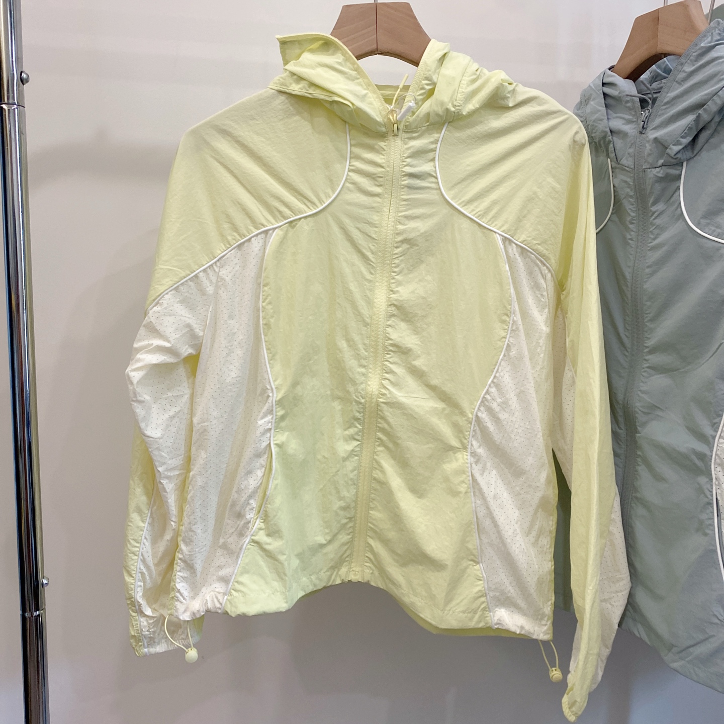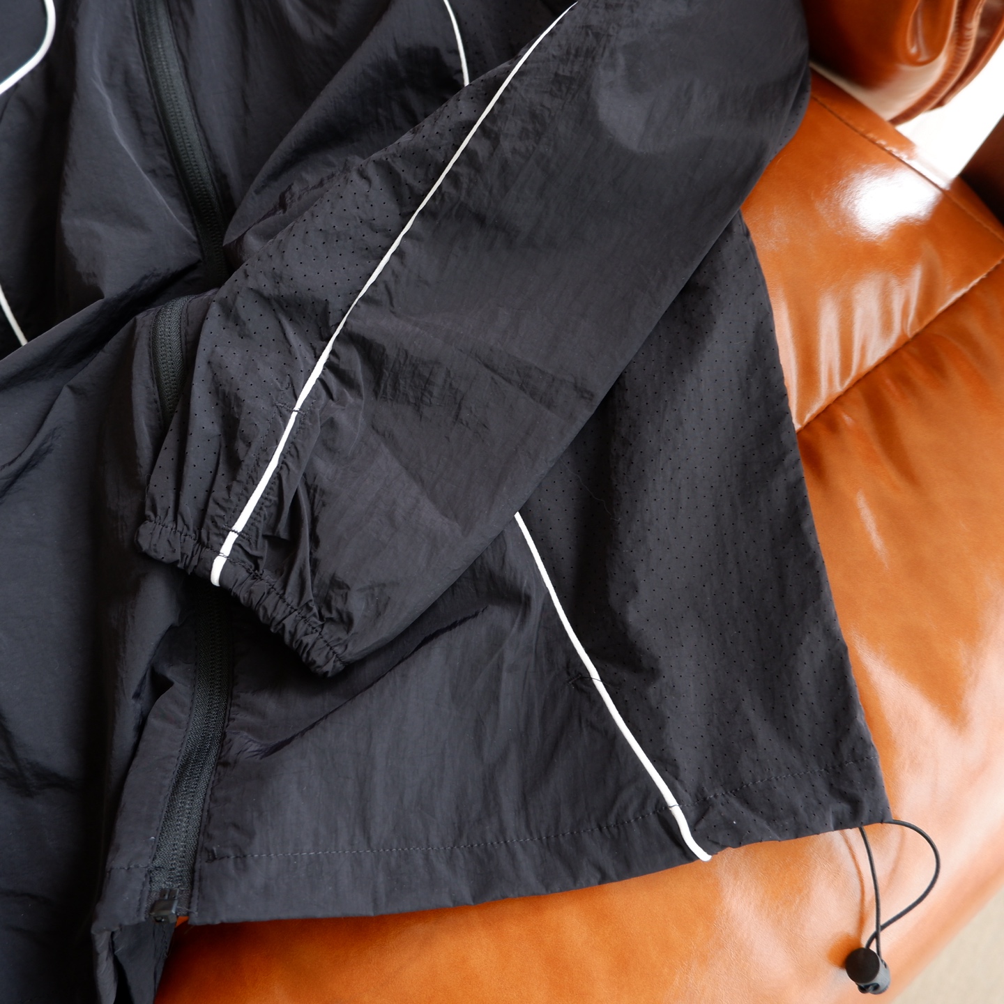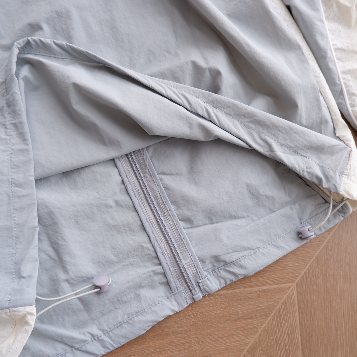 下摆部份同样配备同色系抽绳调节系更