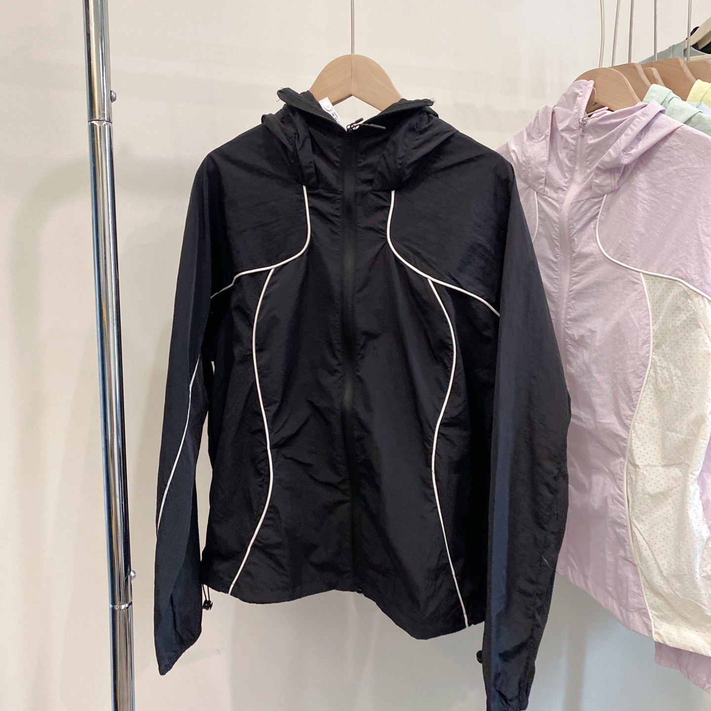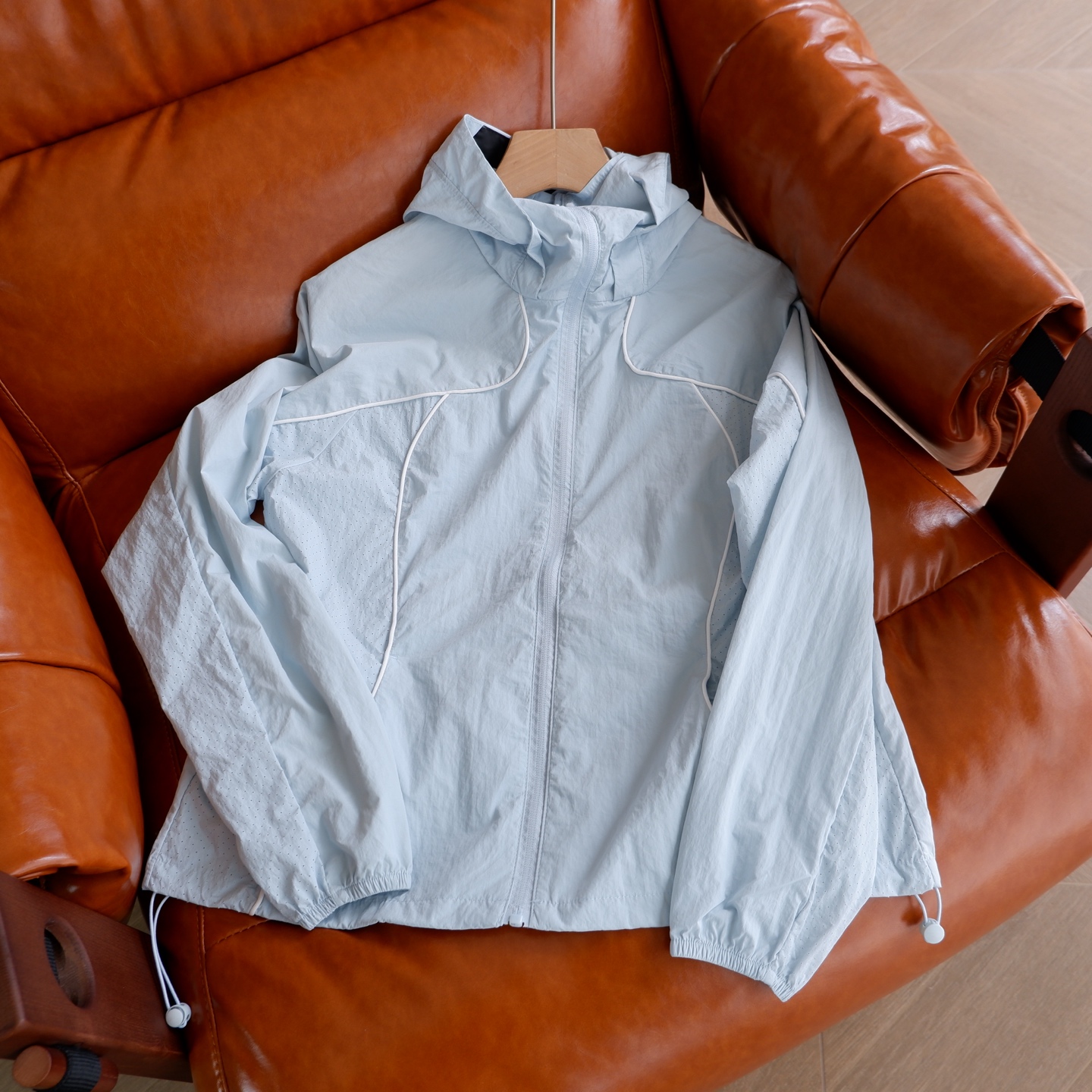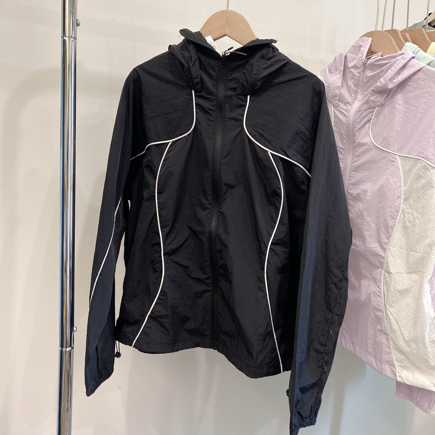 下摆部份同样配备同色系抽绳调节系更