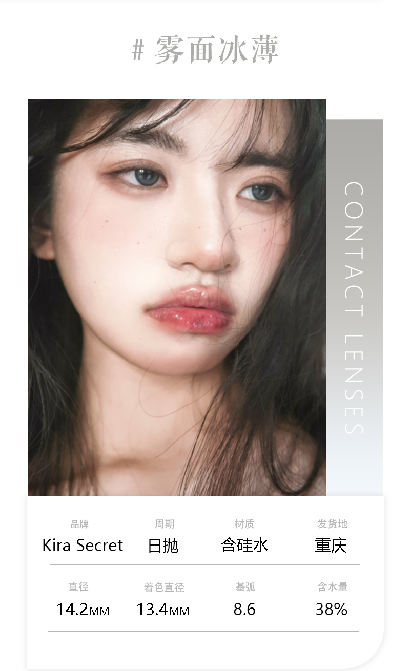 Kira Secert 雾面冰薄 日抛 10片 直径14.2mm 着色13.4mm 基弧8.6 含水38% 韩国进口