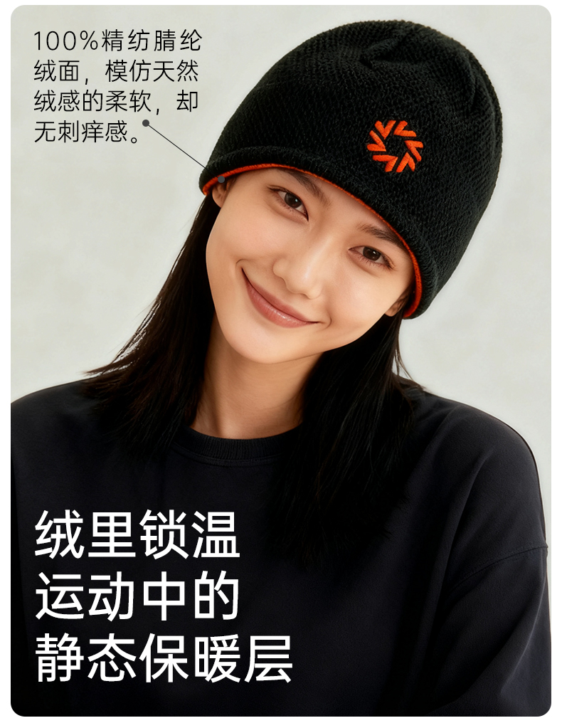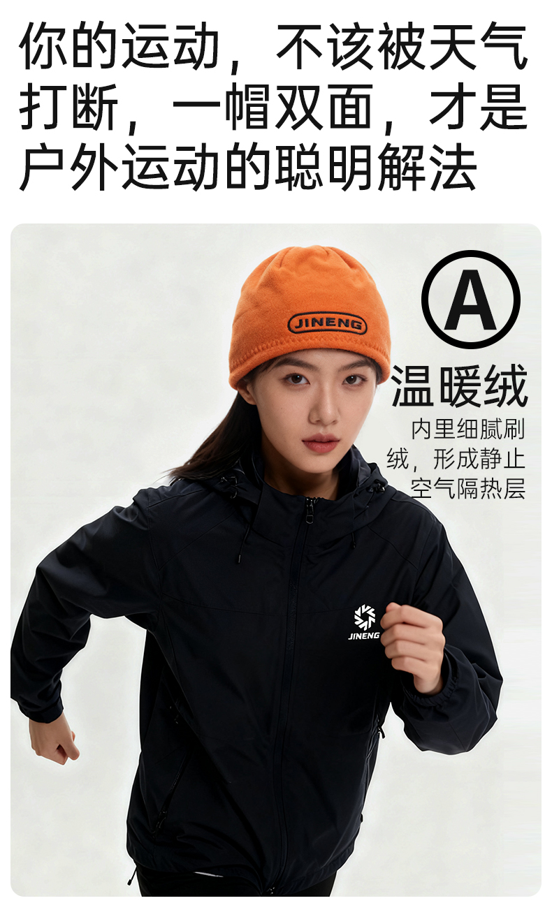 积能户外抓绒帽男女秋冬双面戴保暖针织毛线帽骑行运动防风加厚