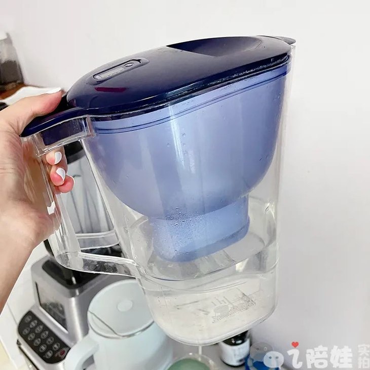 过滤好的水放在滤水壶里。这个水壶还可以拿下来单独当个凉水壶用。