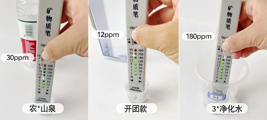 开团款的矿物质水平在12ppm左右(ppm是水质硬度的指标),比纯天然矿泉水的30ppm和3*这种传统滤芯的180ppm表现都要好(但矿泉水胜在有益矿物质更丰富水质也软,3*也符合国家≤300ppm的饮用净水标准)