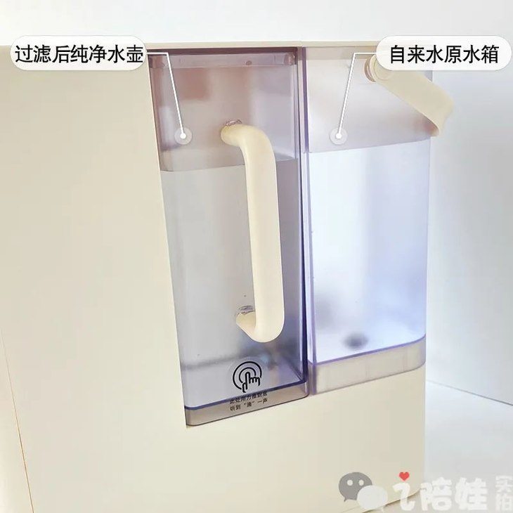 ● 水箱不是特别大:这款蓄水壶是2L,净水壶是1L。按一般三口之家的日常饮用水3-4L来算,每天添个2-3次水就差不多了。这样存水时间不长,老能喝上新鲜水。如果人口特别多,净水需求特别大,还是建议选择水箱容量更大的哈。