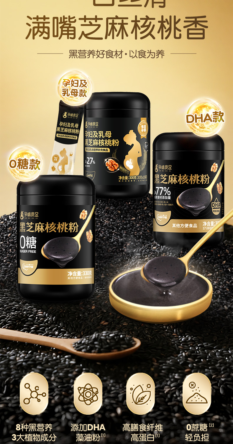 【品牌直发】孕味食足孕妇可吃DHA黑芝麻糊核桃代餐粉饱腹无添加蔗糖营养早餐