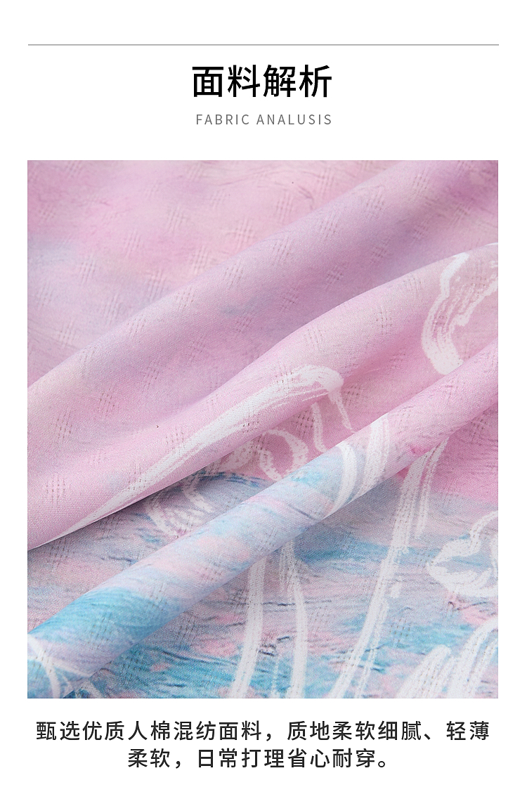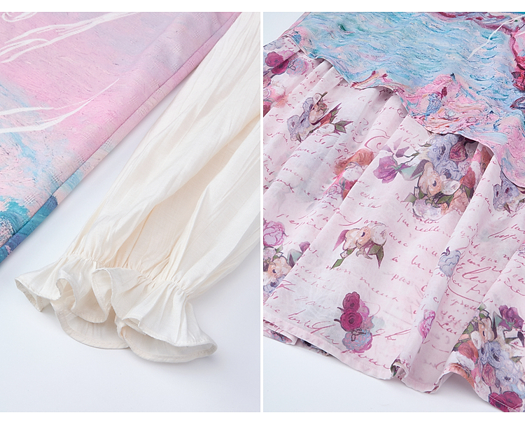 两三事 桃气莓酒 2025夏季新款小清新印花布拼接绑带短袖t恤女
