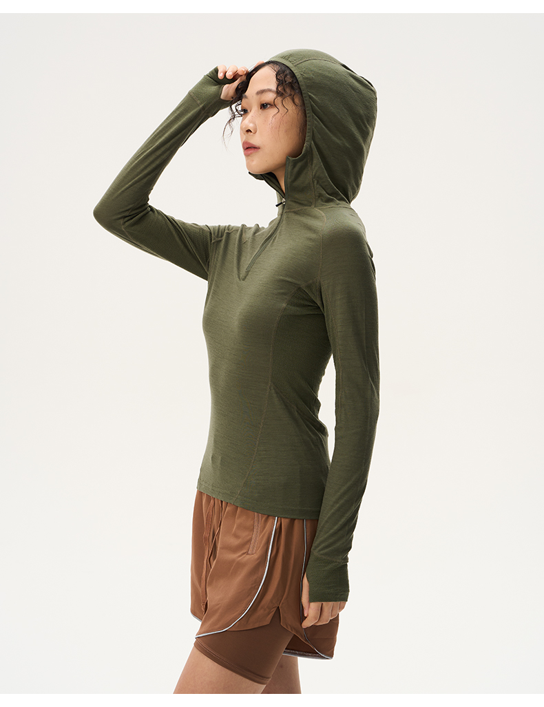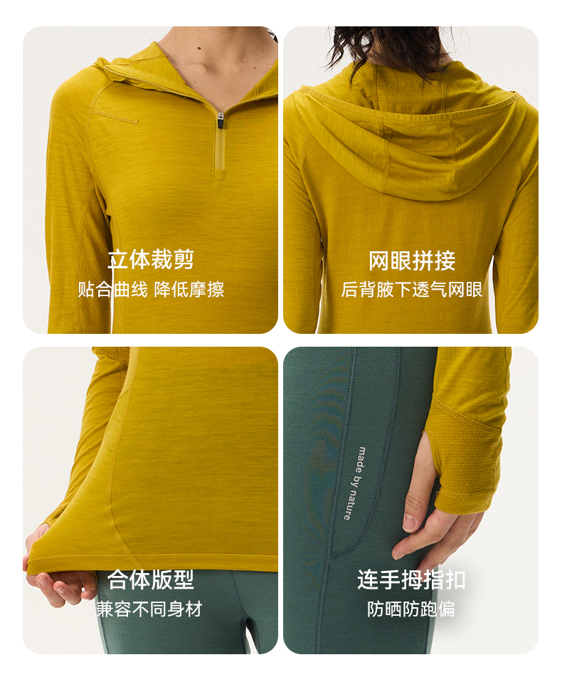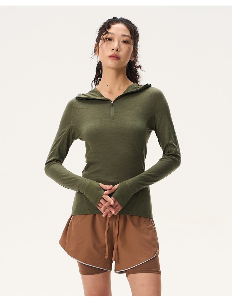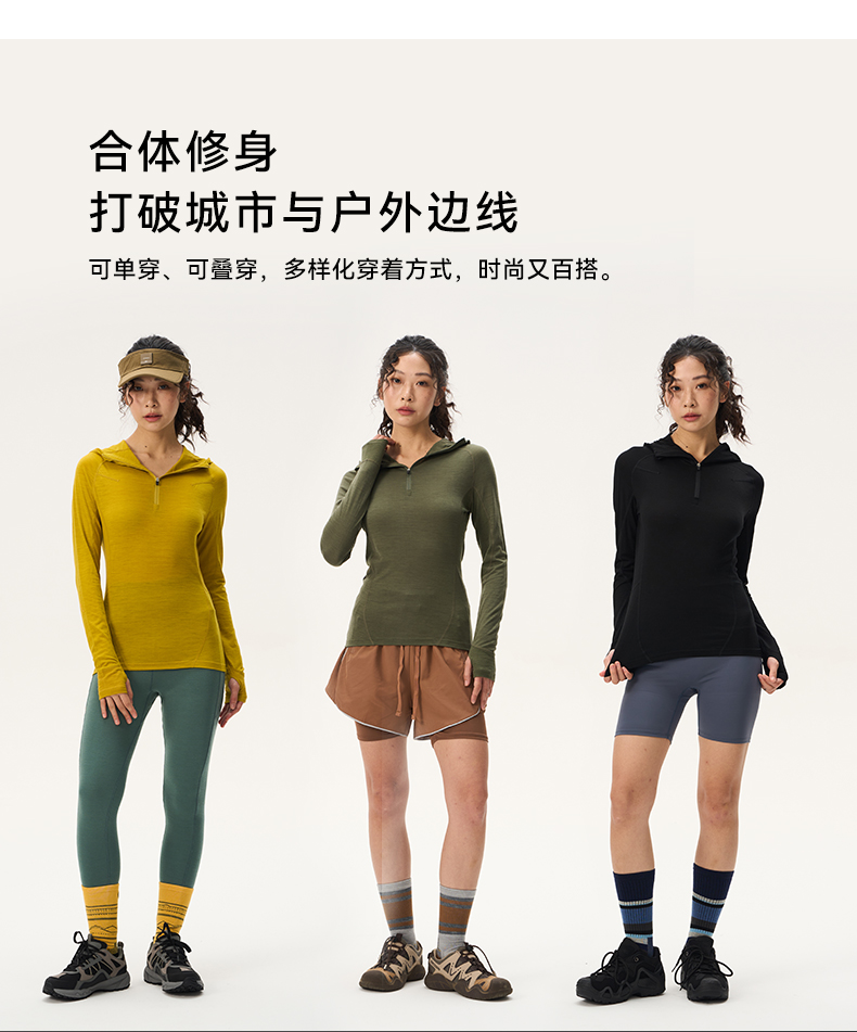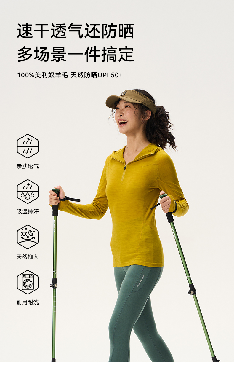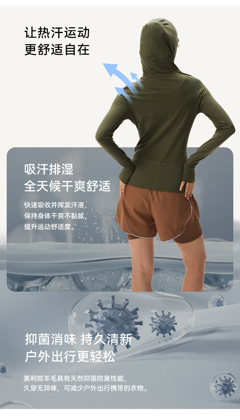 灰壳美利奴羊毛速干衣女户外登山排汗方式美丽诺速干长袖上衣t恤