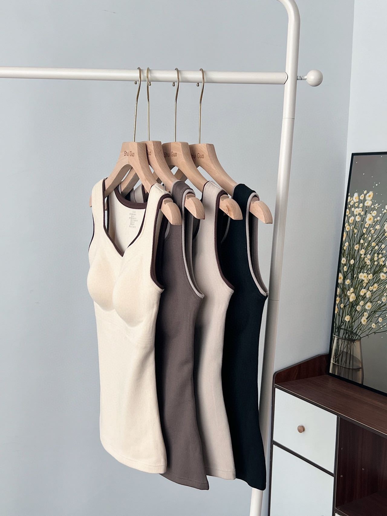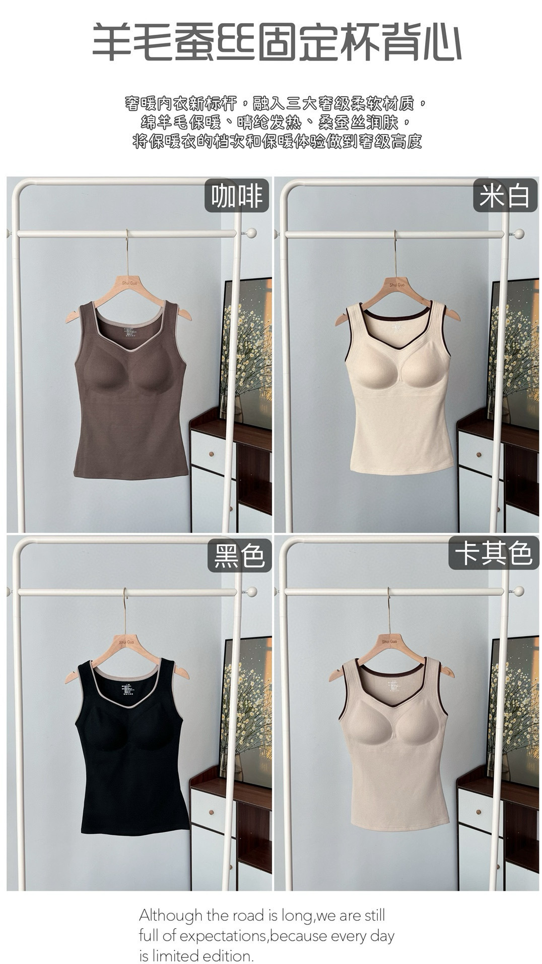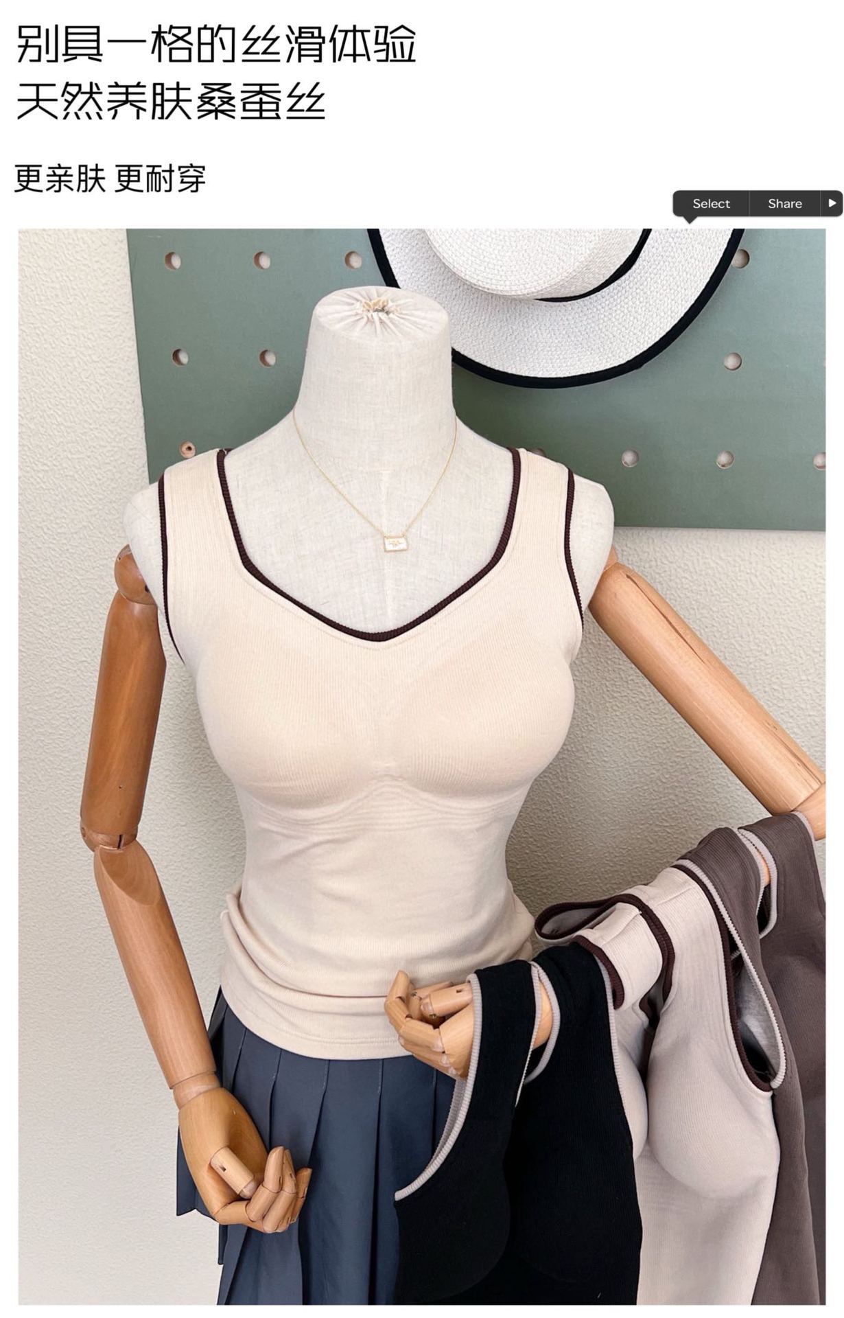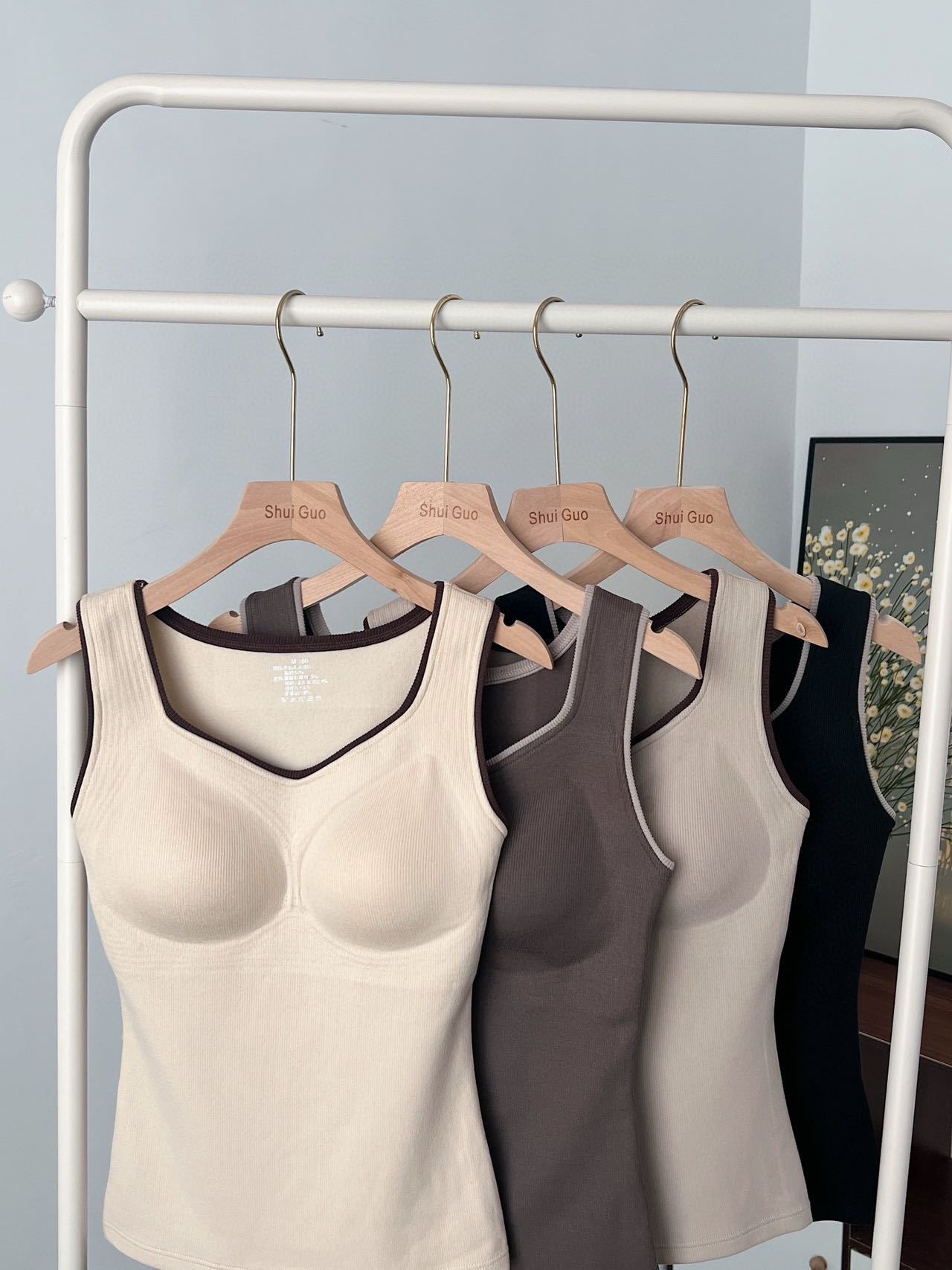 新款女士保暖背心德绒带胸垫一体式内衣无袖撞色方领打底衫可外穿