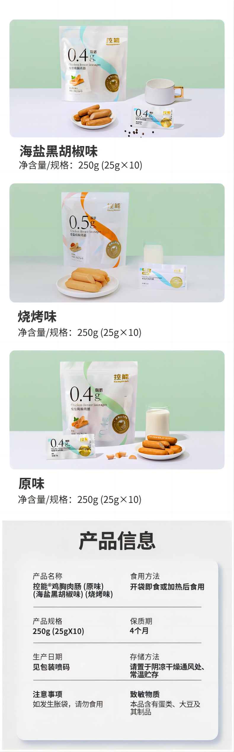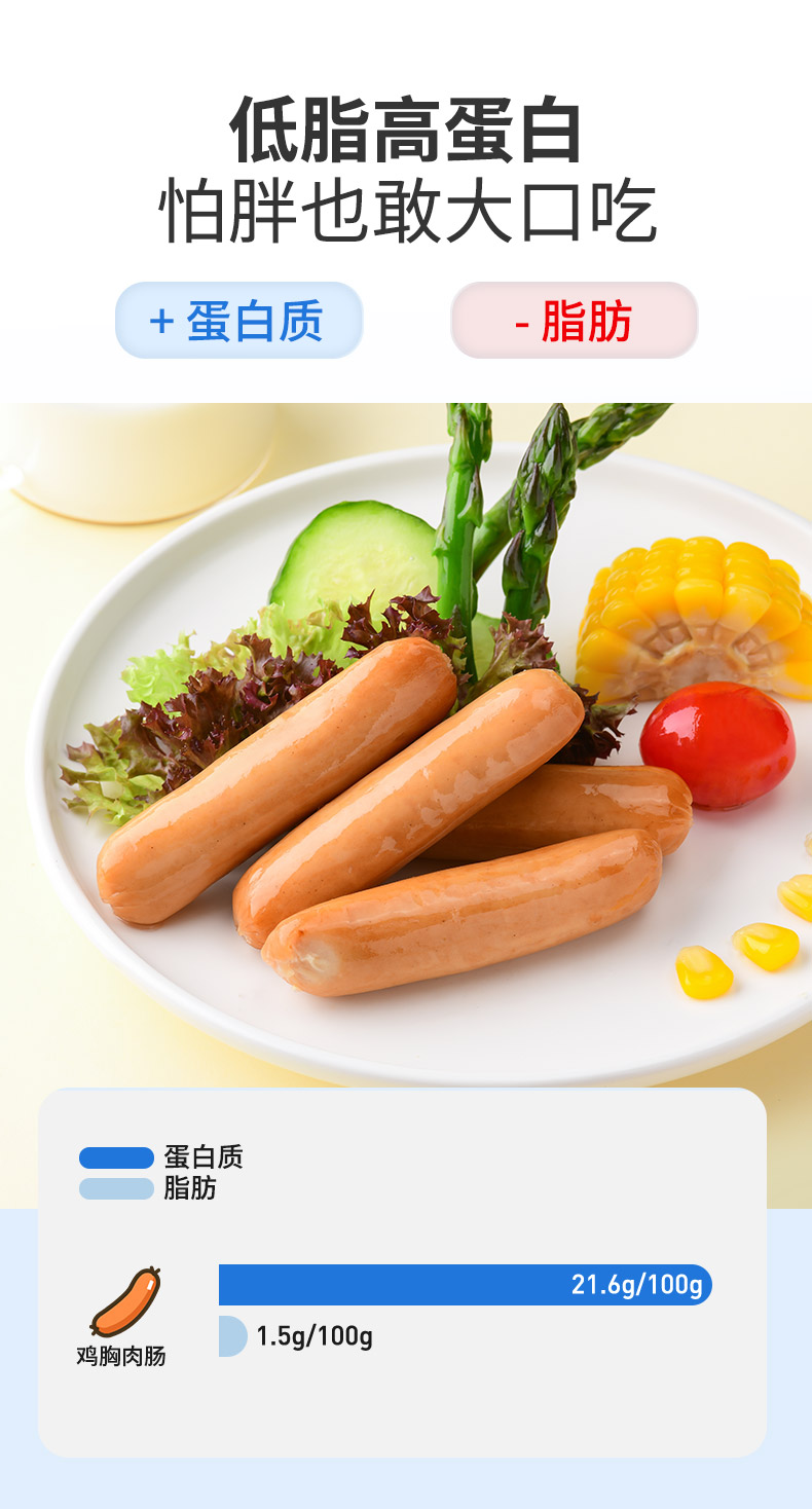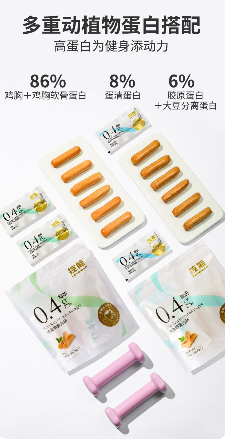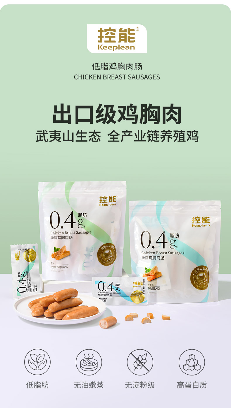 控能 低脂鸡胸肉肠(黑胡椒味)3袋装 250g*3