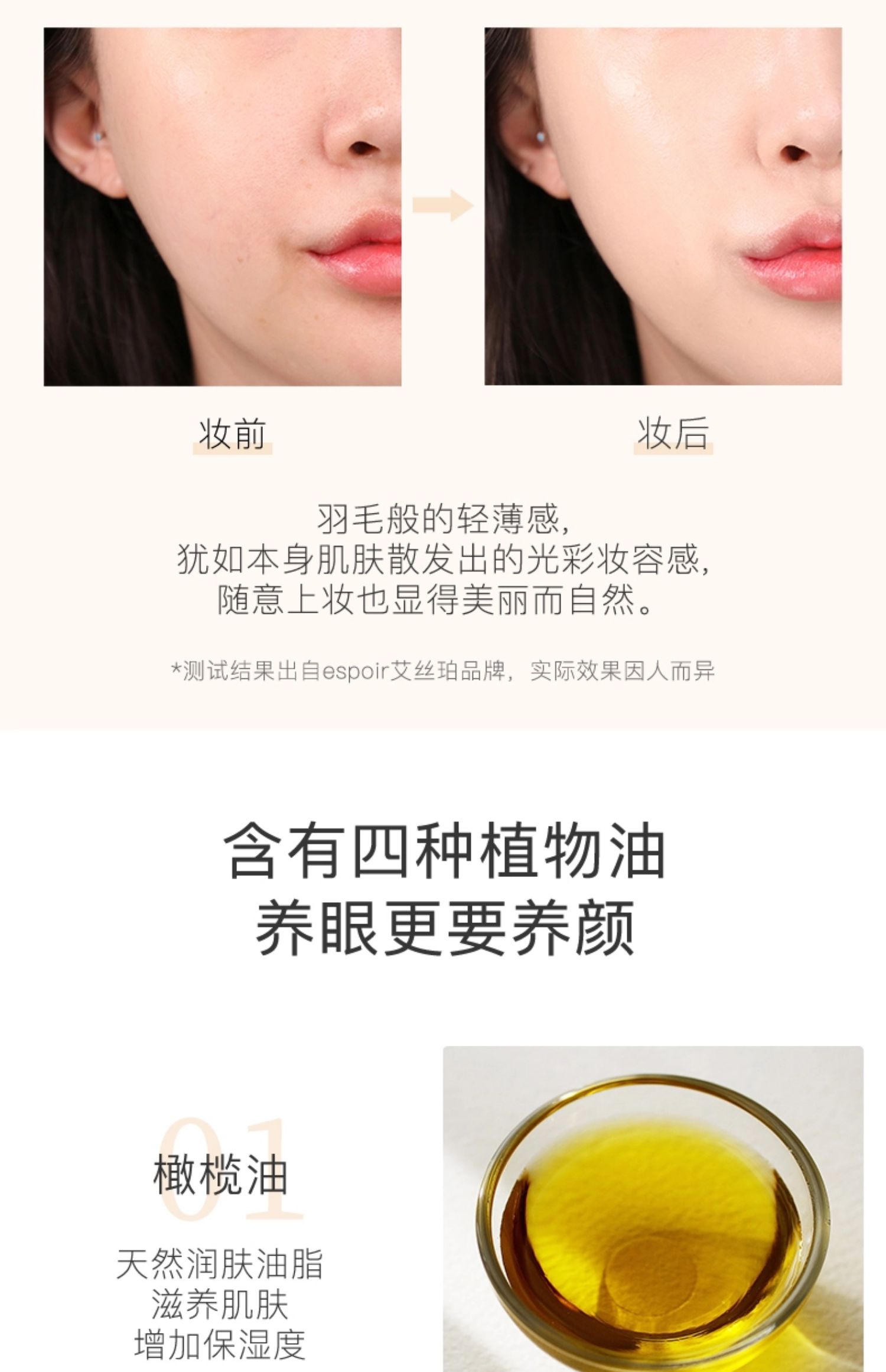 采用水感配方,润而不油,远离卡粉起皮斑驳脱妆