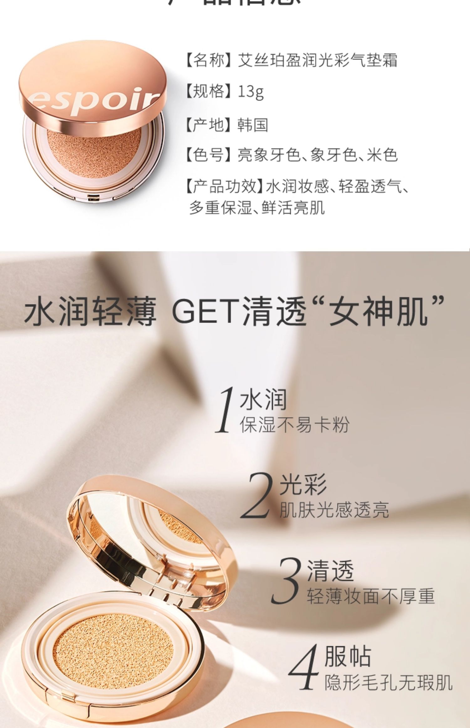 【品名】韩国espoir盈润光彩气垫BB霜17g 亮象牙色(正装+替换)