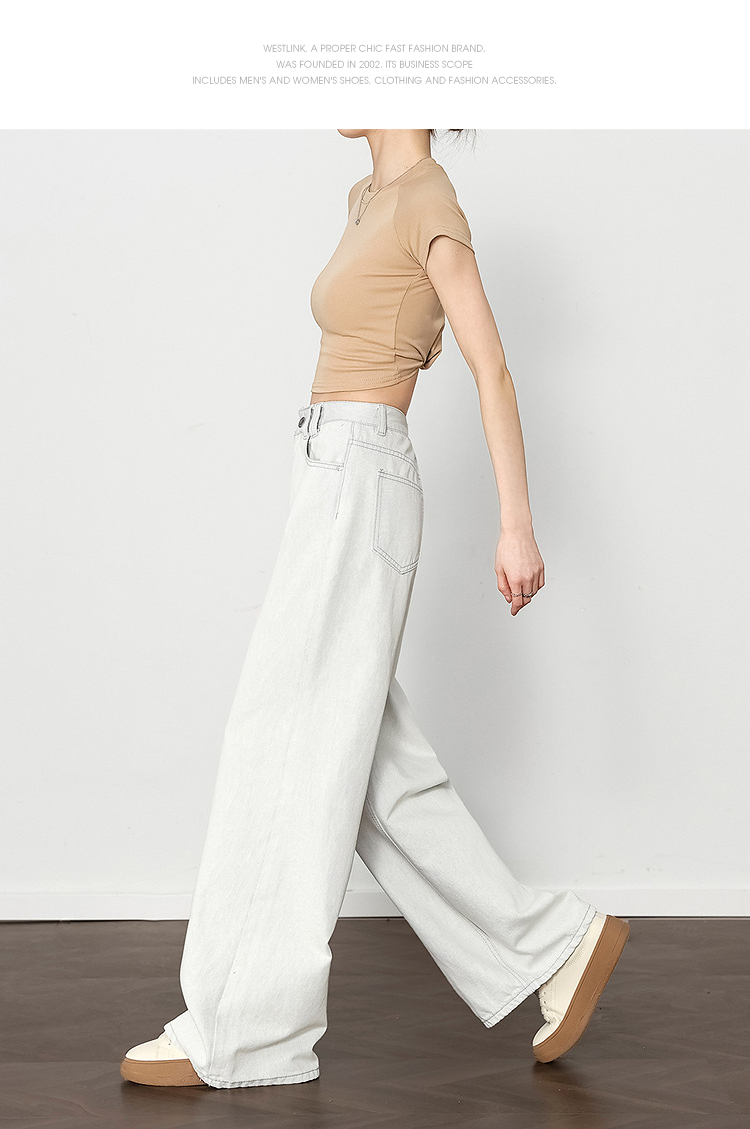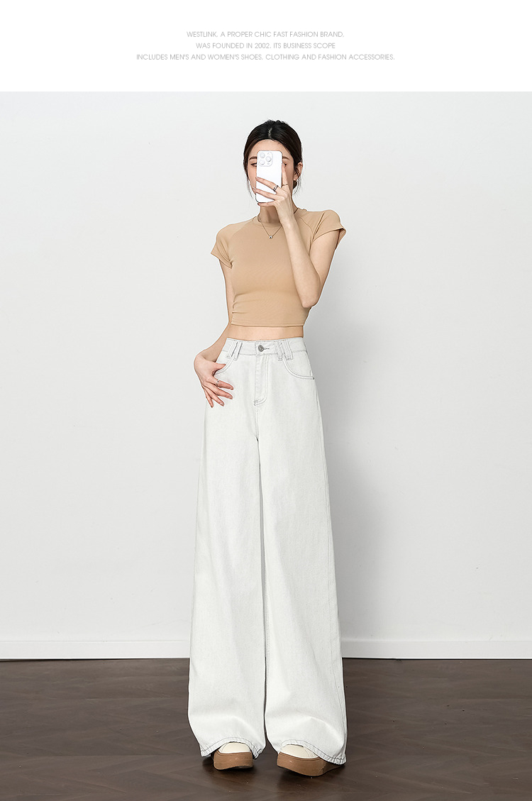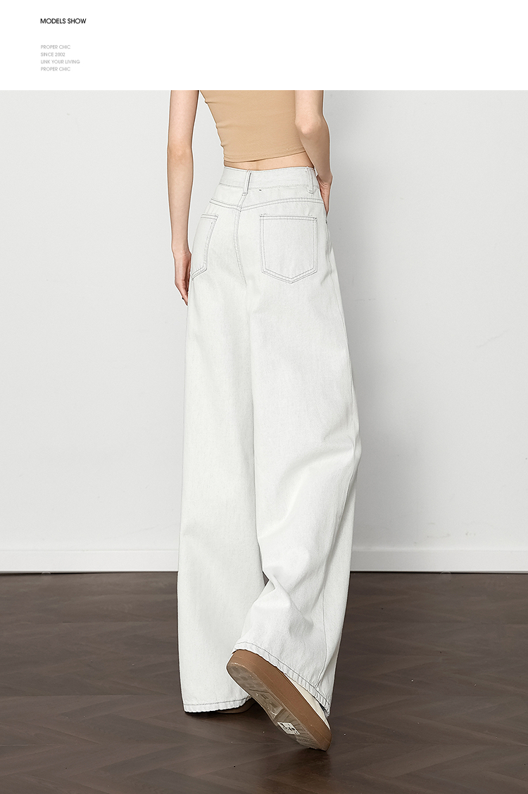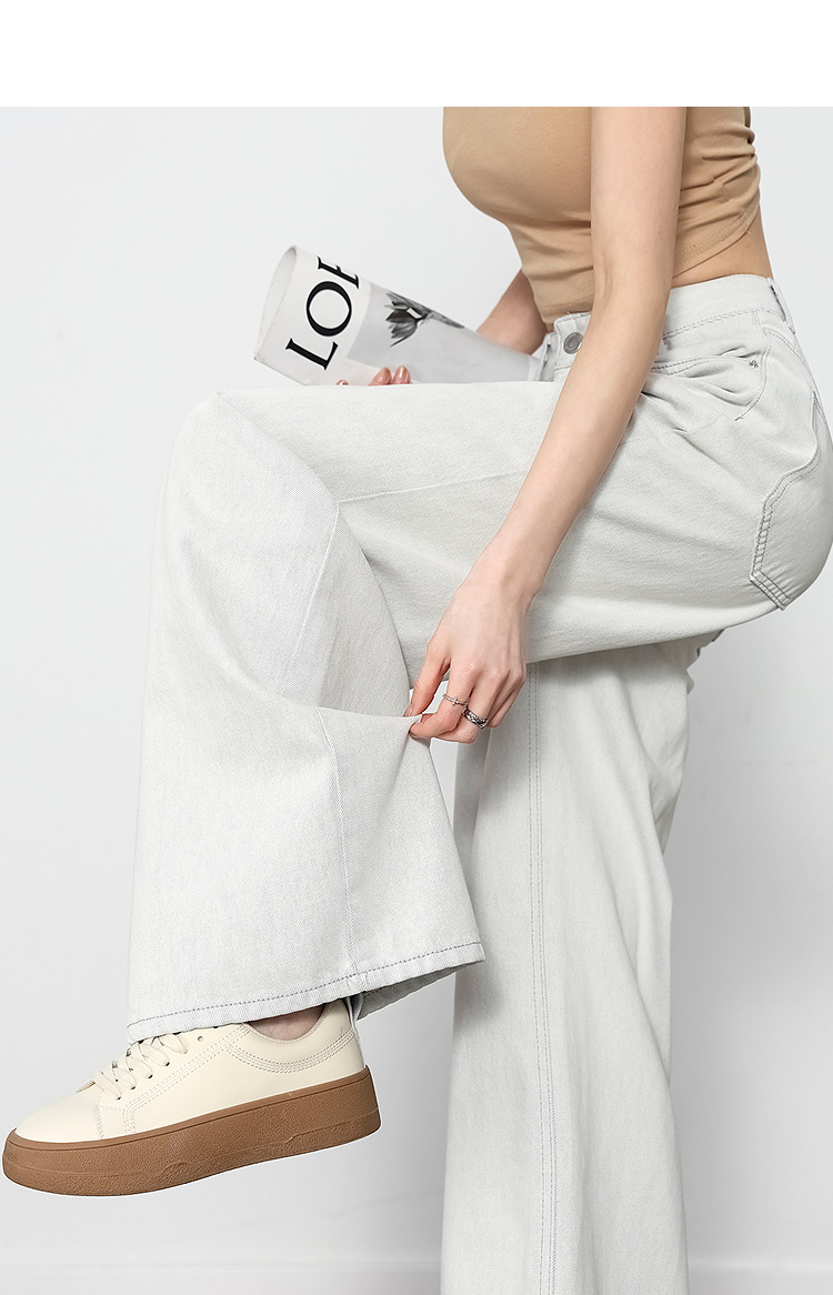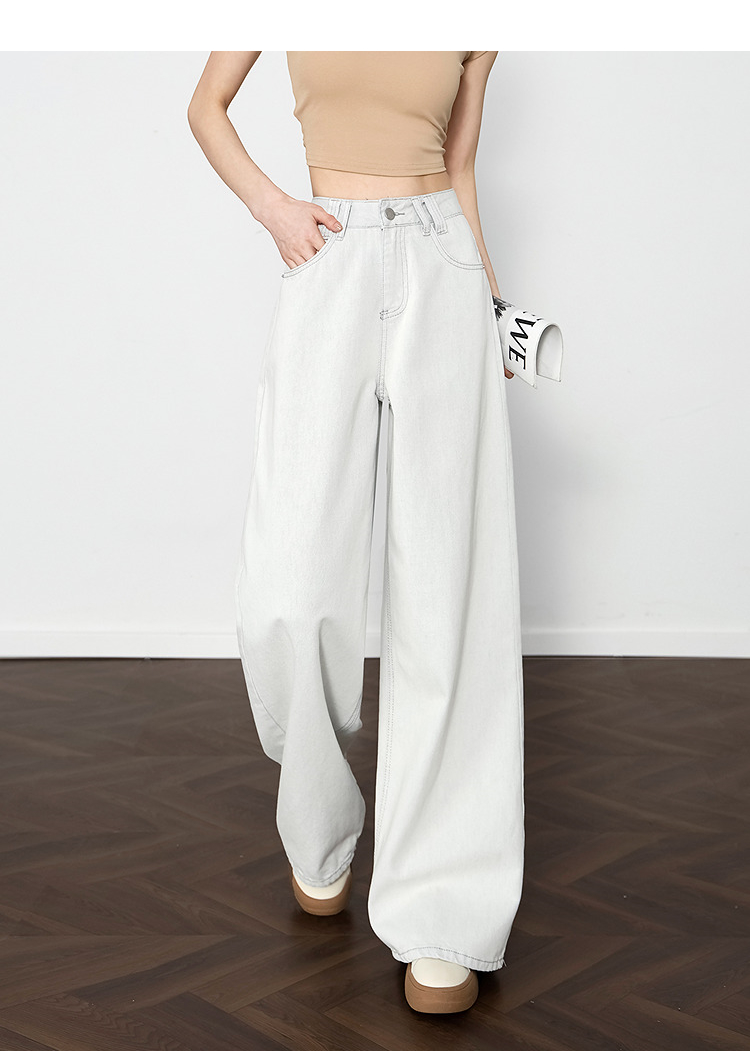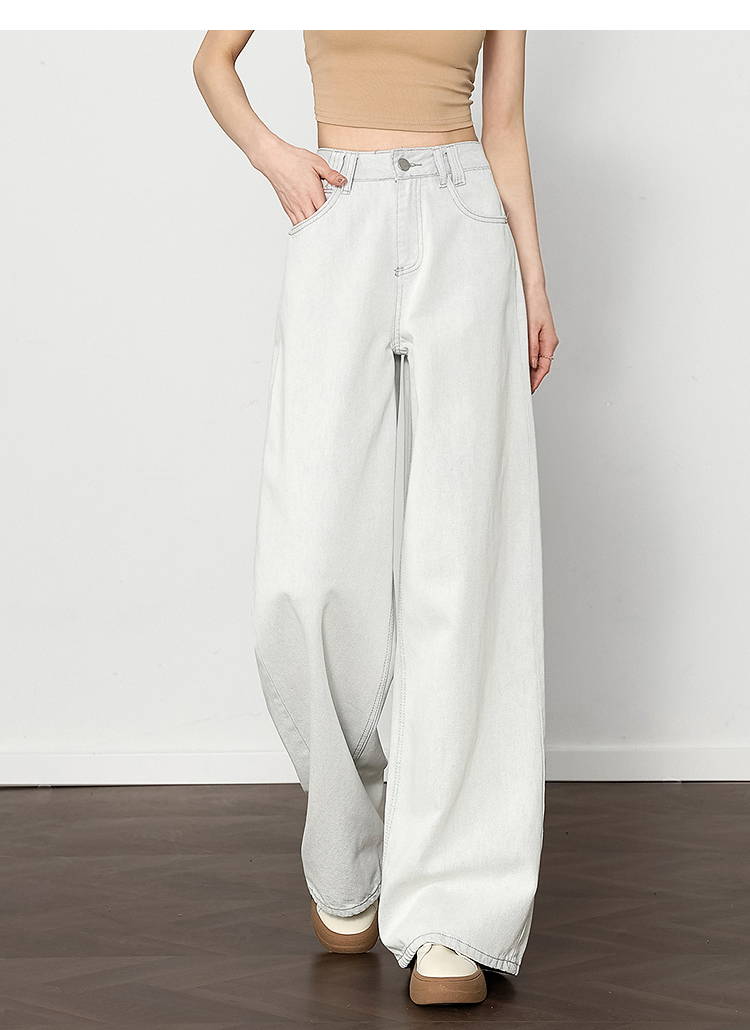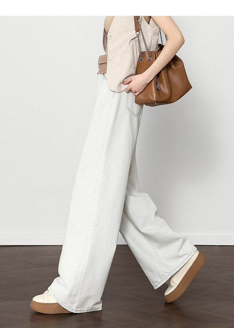西遇垂感宽松阔腿裤女2025年新款小个子慵懒风高腰白色牛仔裤D0050441