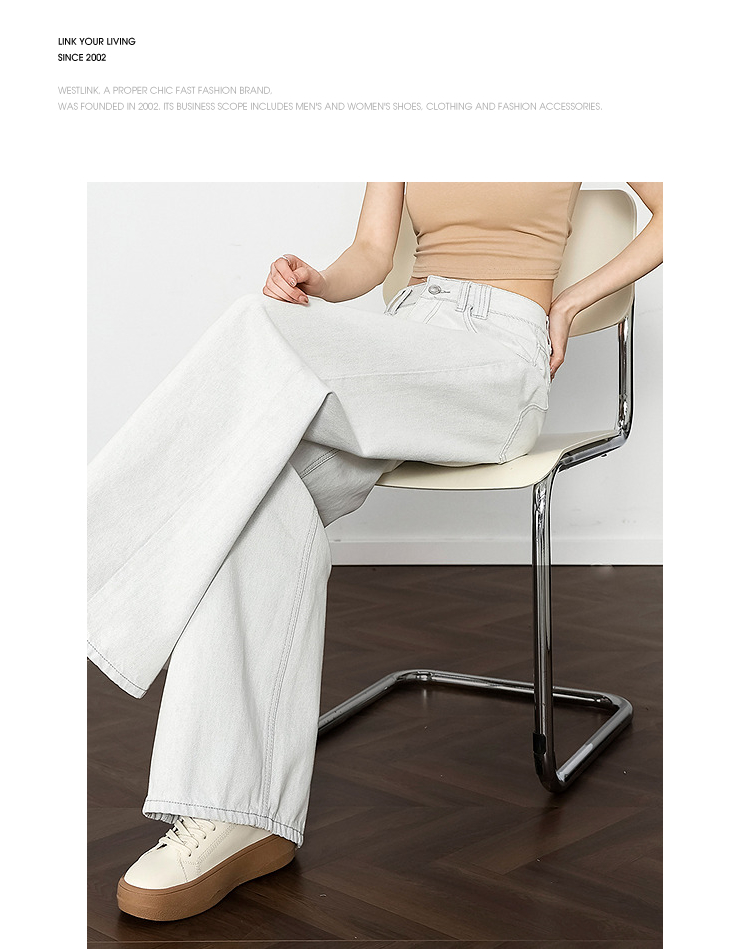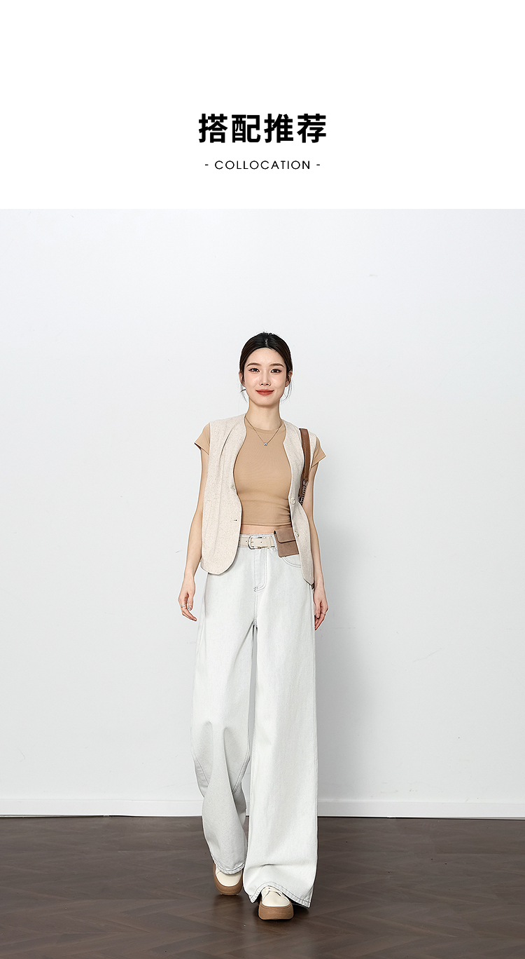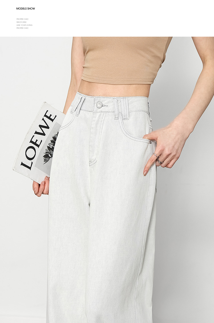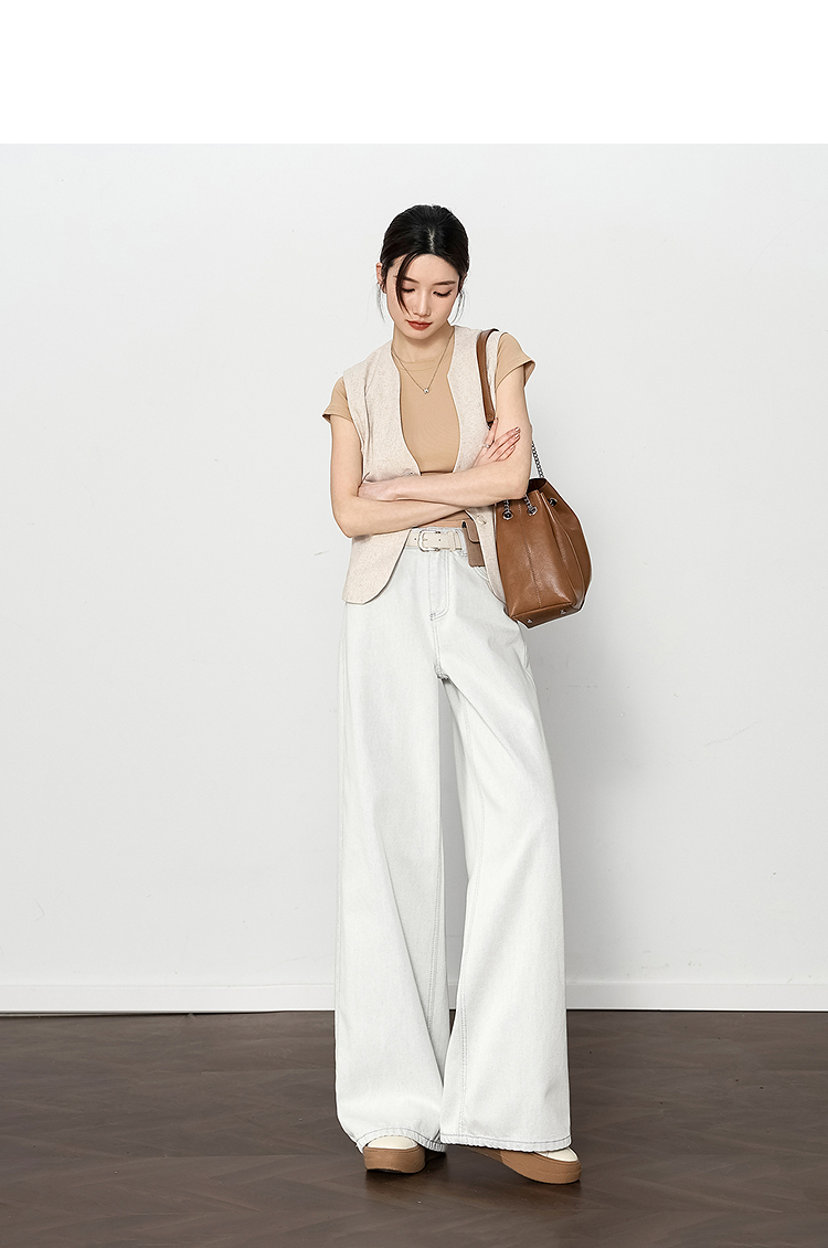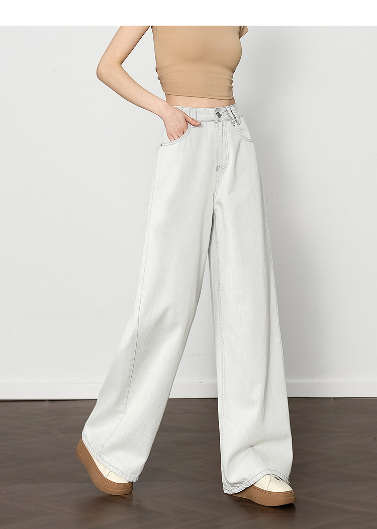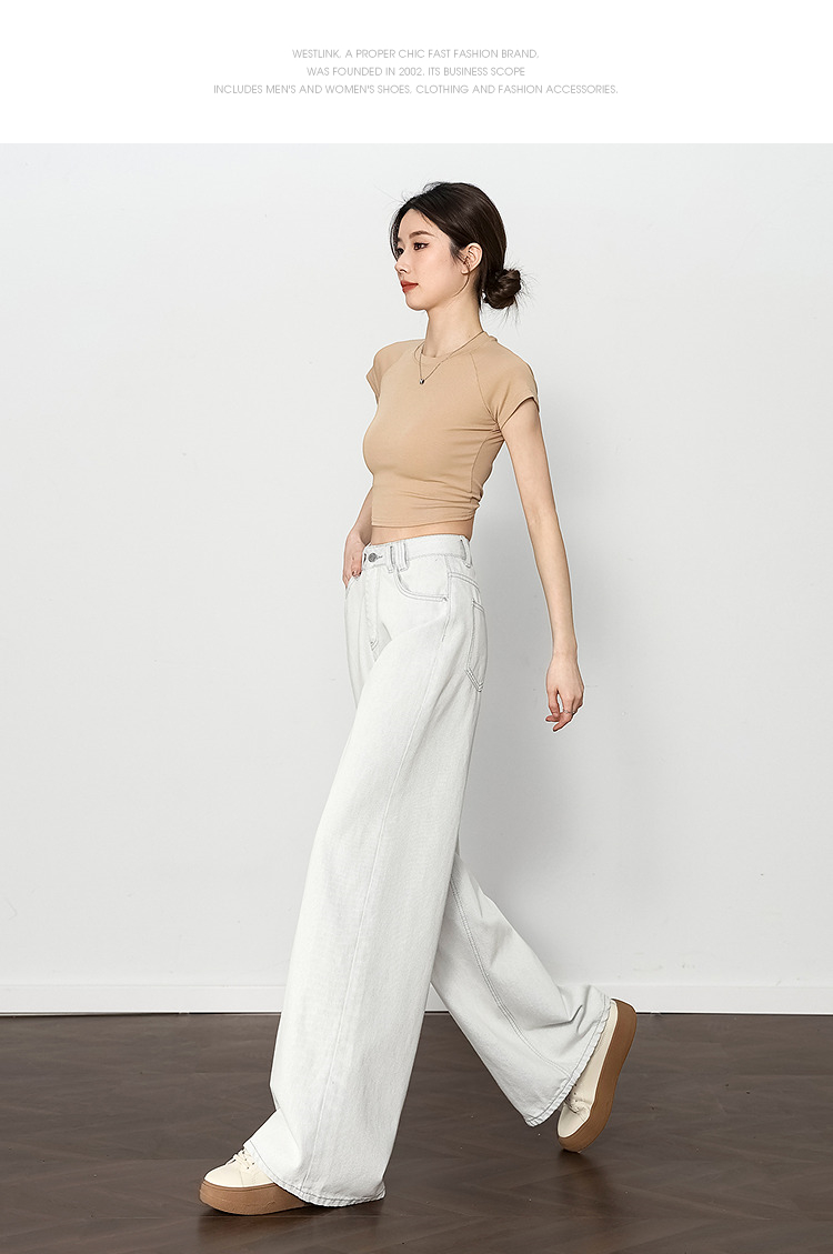 西遇垂感宽松阔腿裤女2025年新款小个子慵懒风高腰白色牛仔裤D0050441