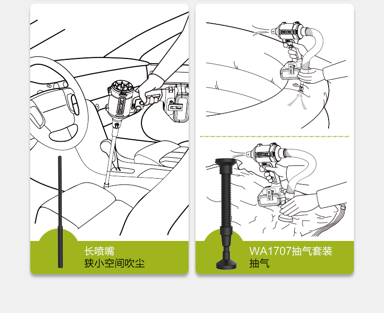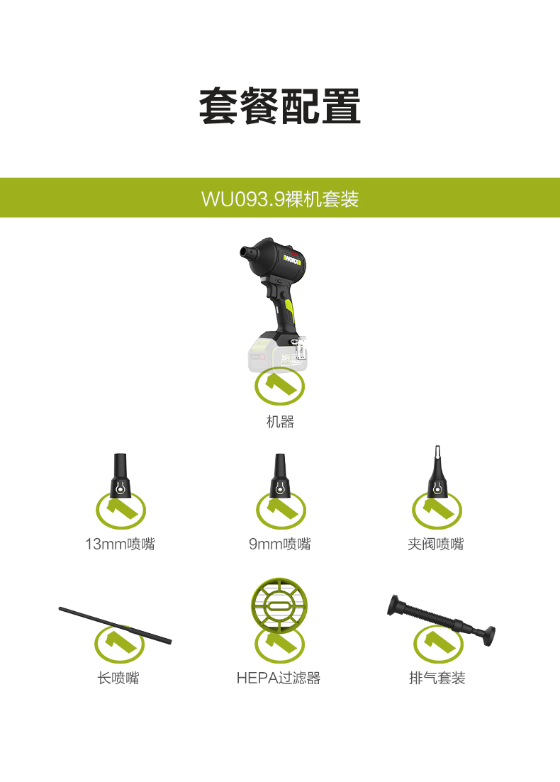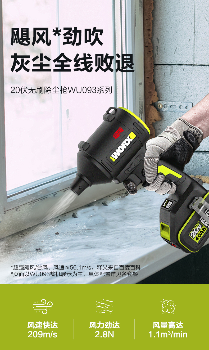 威克士无线强力吹尘枪WU093小型锂电工业吹风机吹灰尘除尘鼓风机