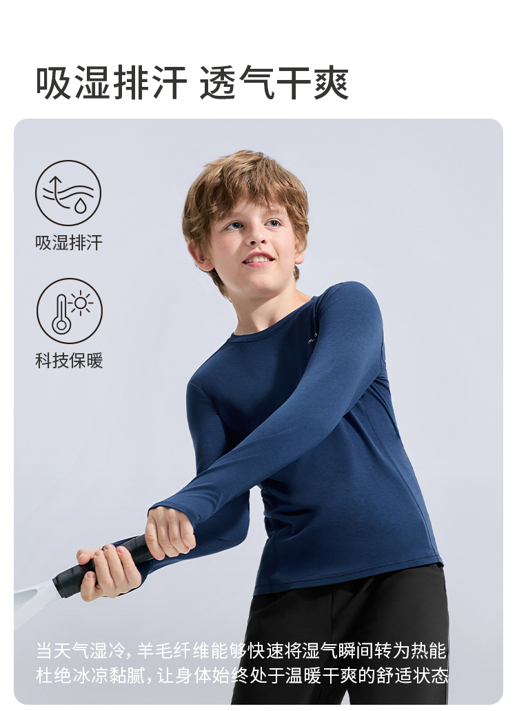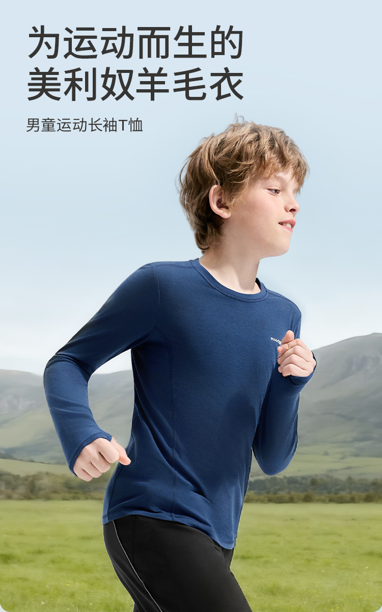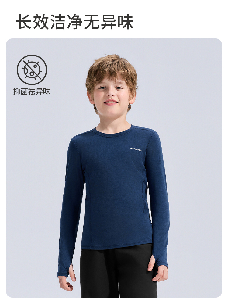 moodytiger儿童运动休闲户外长袖T恤柔软贴身吸湿保暖54110106 【专属】