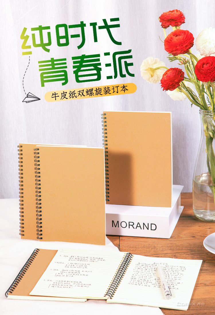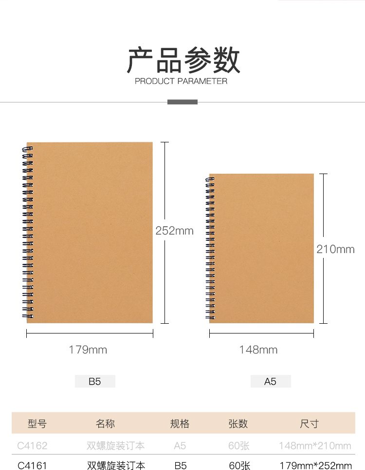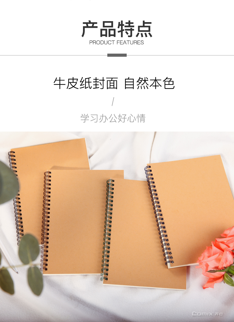 齐心 C4161 纯时代双螺旋装订本 B5 60张 线圈笔记本双铁圈记事本记事簿