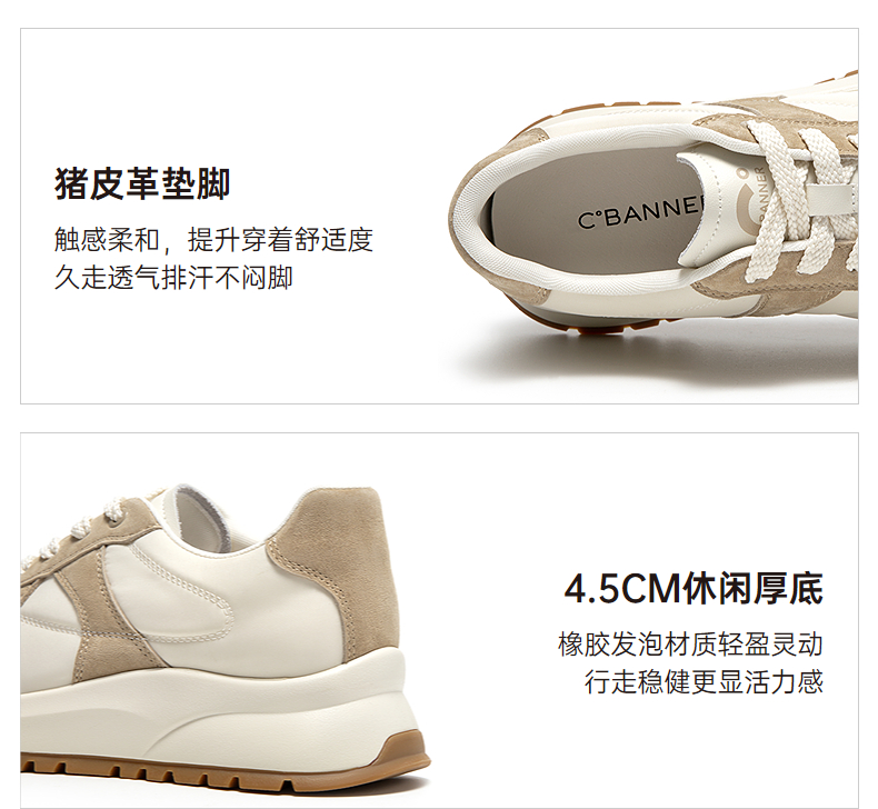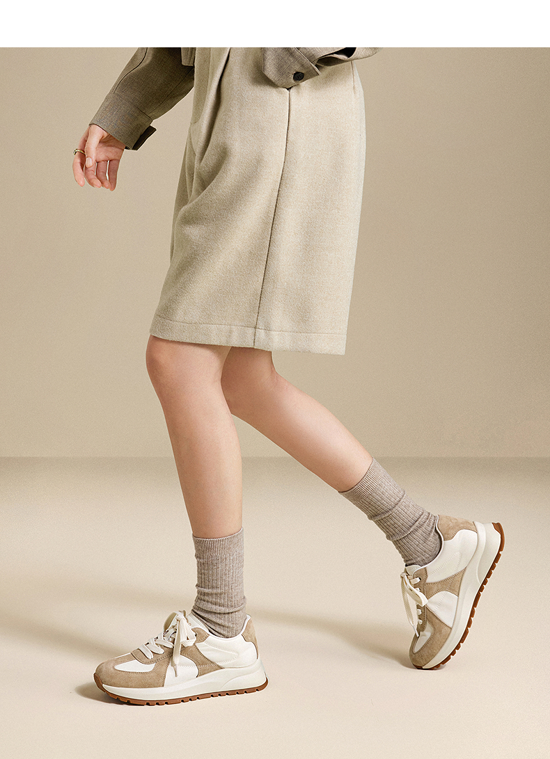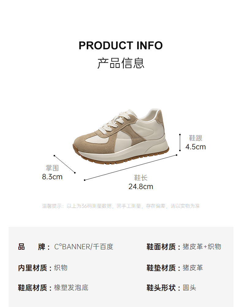 千百度厚底增高时尚休闲鞋女款深口复古德训鞋运动鞋A25453286