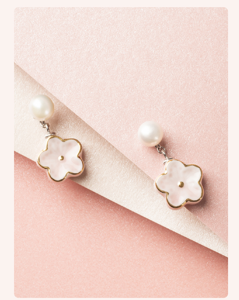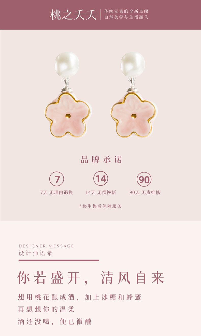 凡华造物桃之夭夭925银耳钉女气质高级珍珠耳环小众设计感耳饰爱情花语桃之夭夭925银珍珠耳钉(短款)
