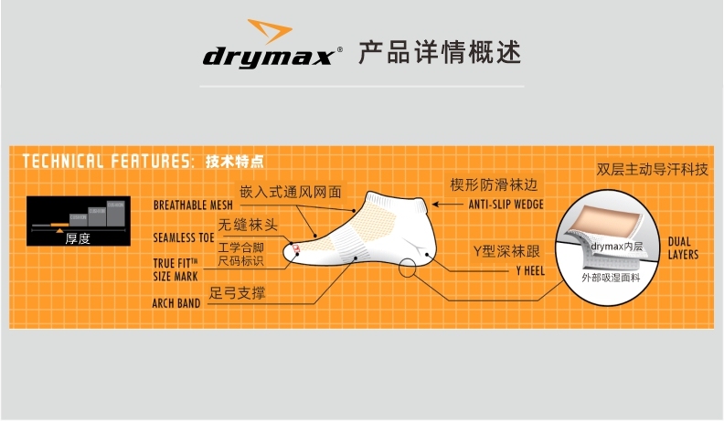 美国 FEETURES 飞鹊 减震缓冲运动跑步袜