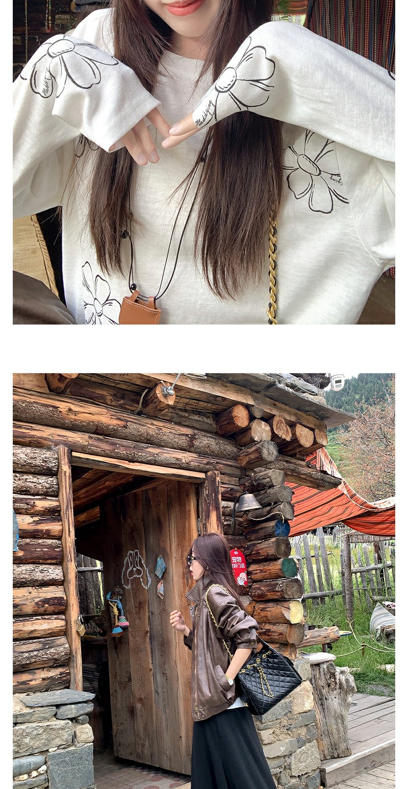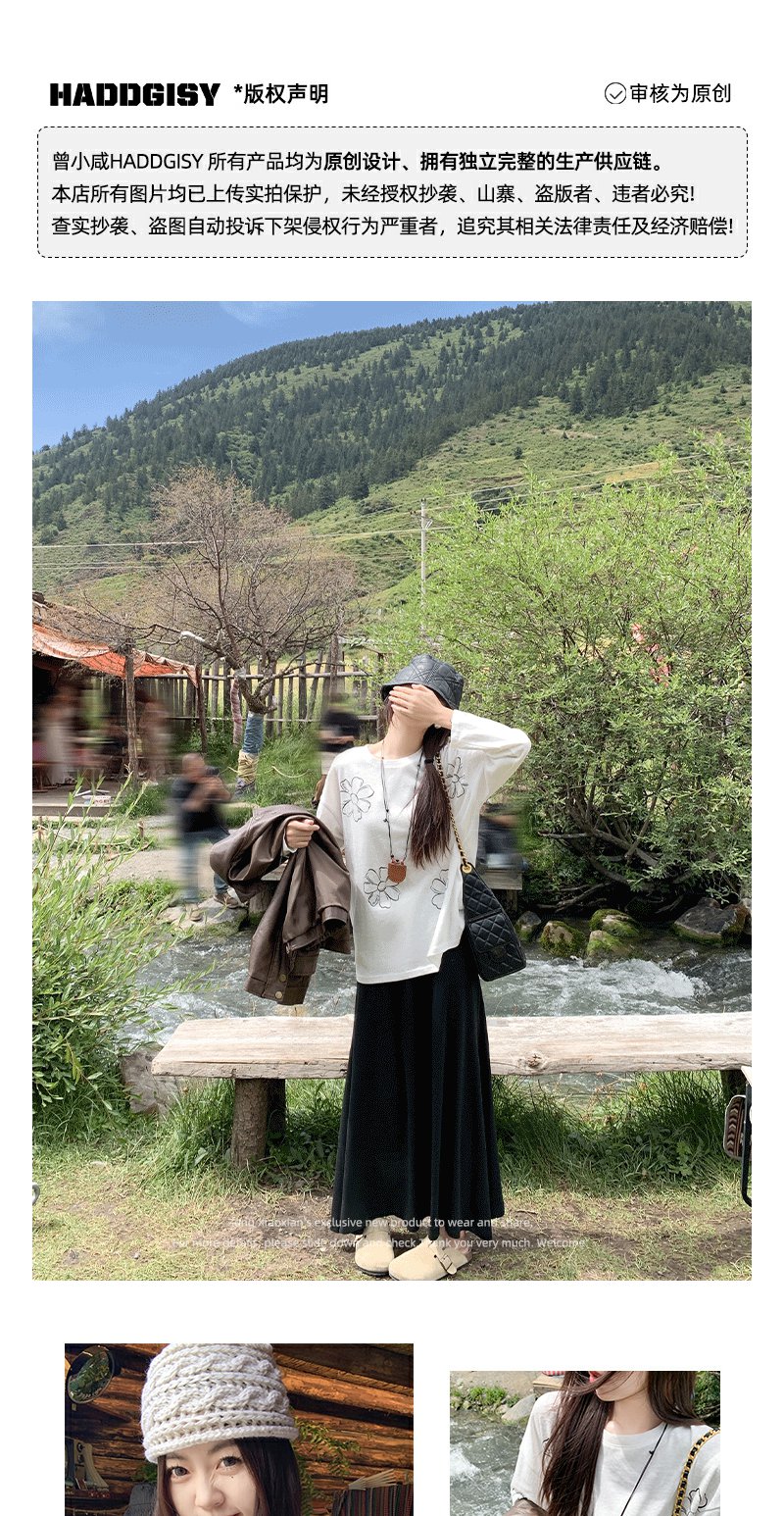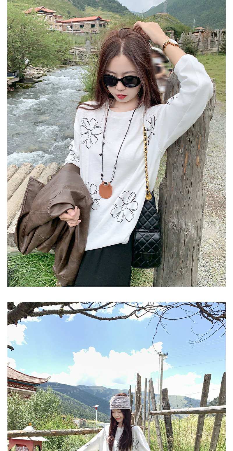 <曾小咸推荐>现货秒杀!微信超特价!韩系慵懒风花朵印花薄款长袖T恤 日常139.99 立减80 秒杀59.99!