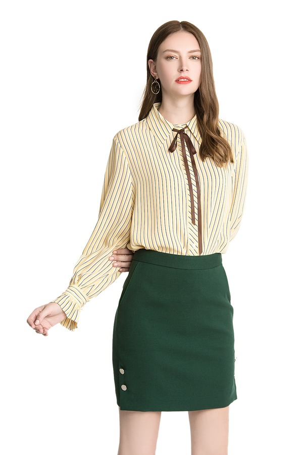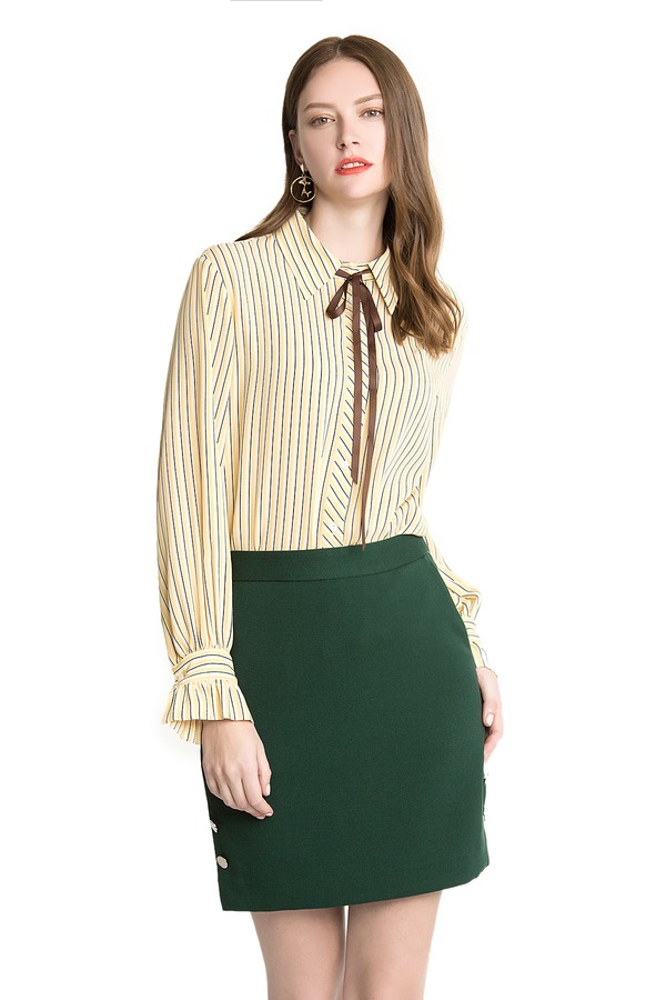SEIFINI诗凡黎 撞色条纹复古衬衫 1460
