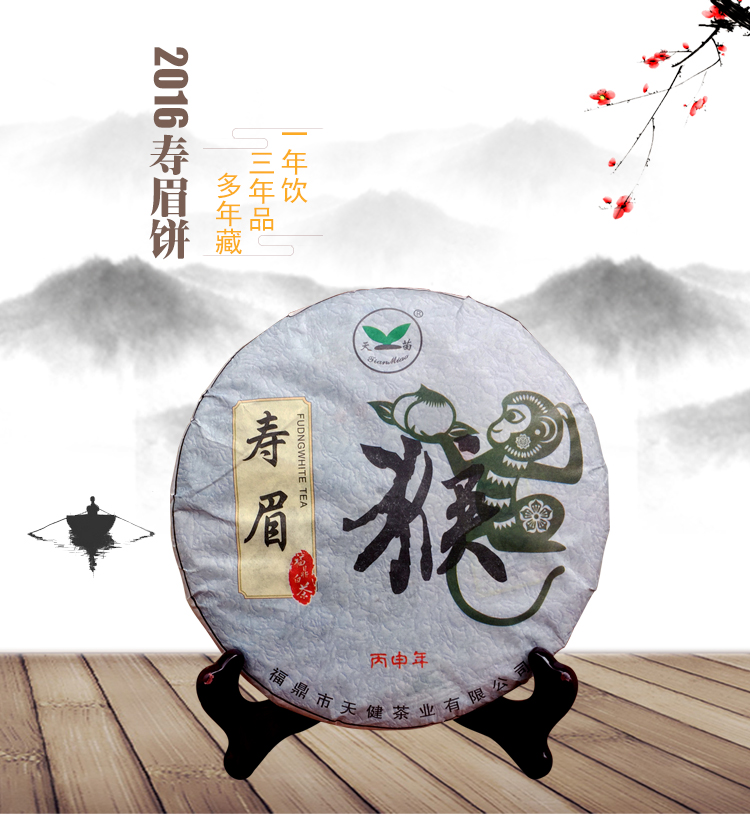 【猴年纪念版】天苗白茶 2016年一级寿眉饼 福鼎白茶 357g/饼(天猫同款)