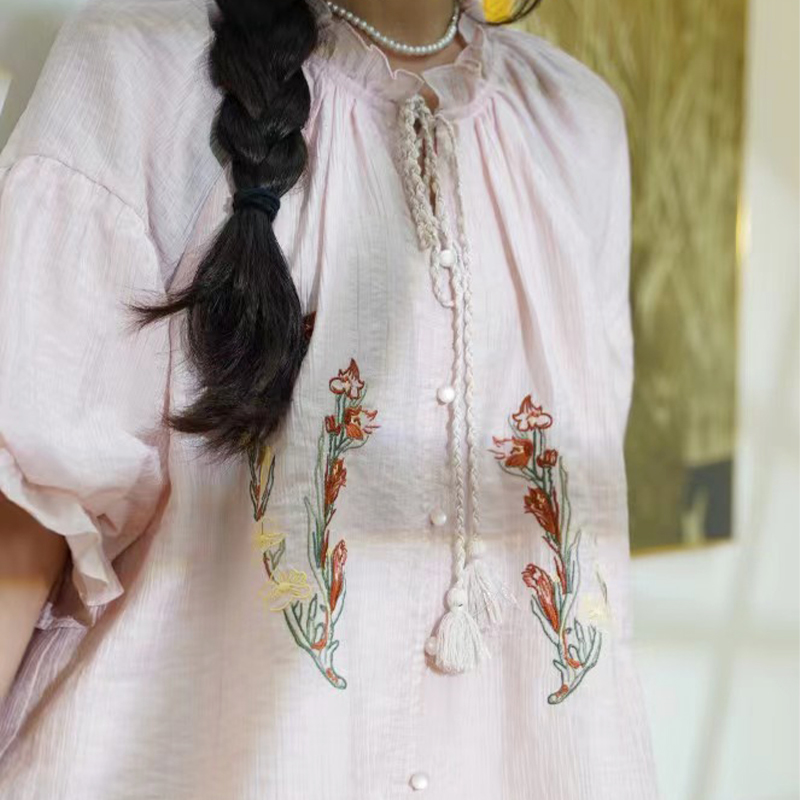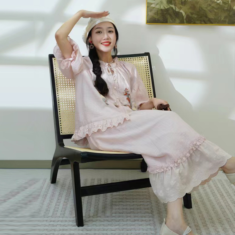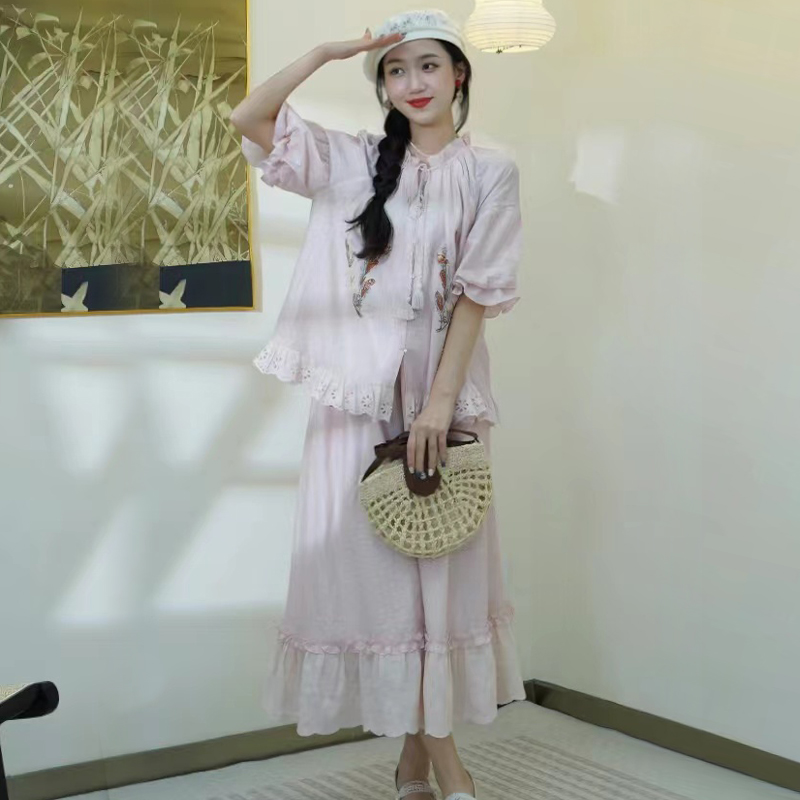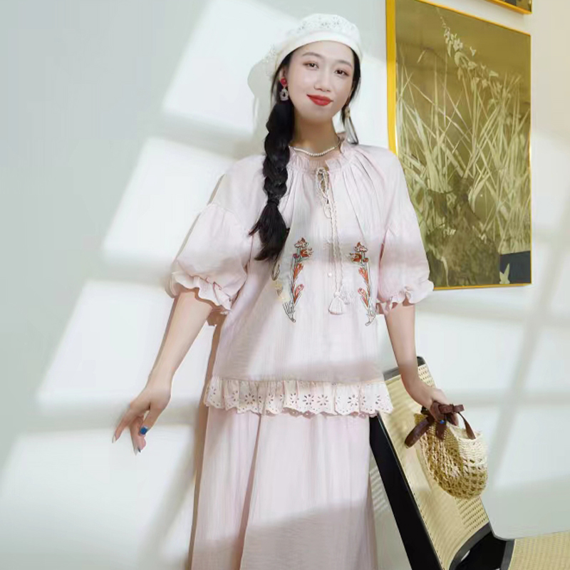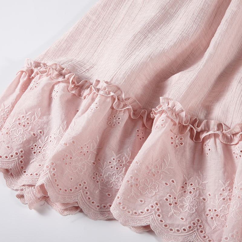 两三事2024夏季新款森女风蕾丝边裙摆高腰半身裙S24XKB282
