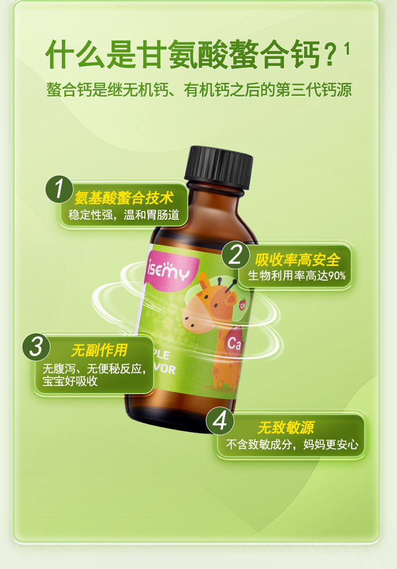 单瓶特惠【新升级】ISEMY埃森美儿童第三代螯合钙滴剂60ml