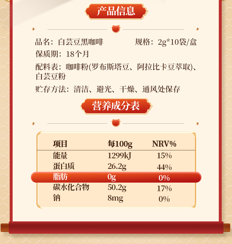 【39任选10件】白芸豆黑咖啡粉20g*1盒