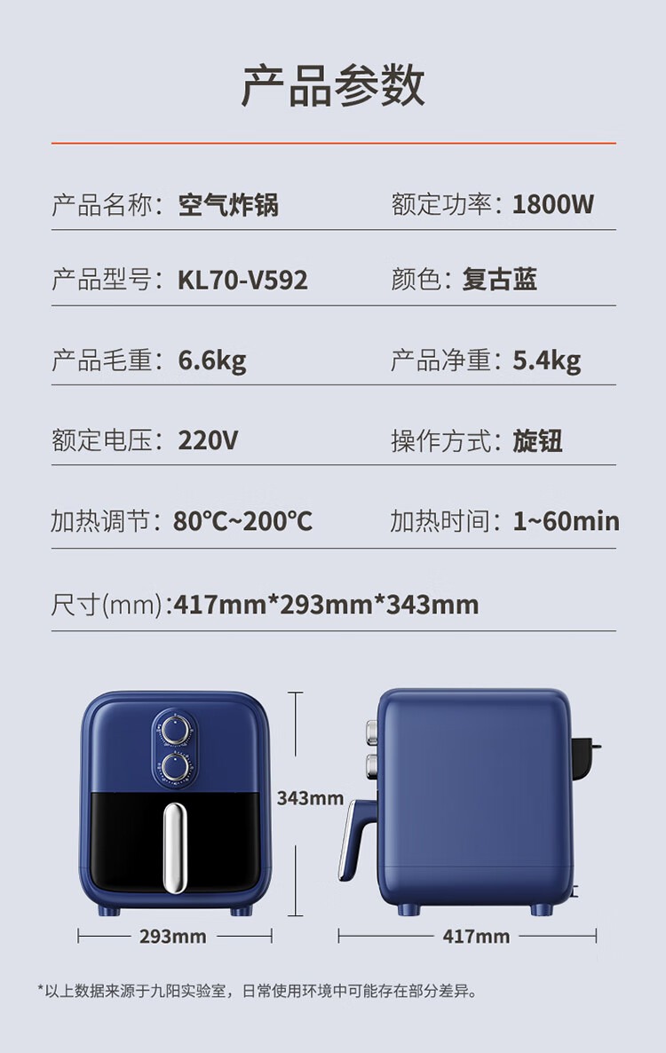 九阳丨空气炸锅 7升大容量 KL70-V592