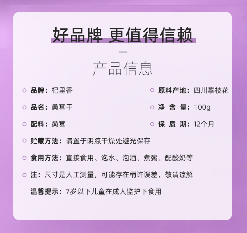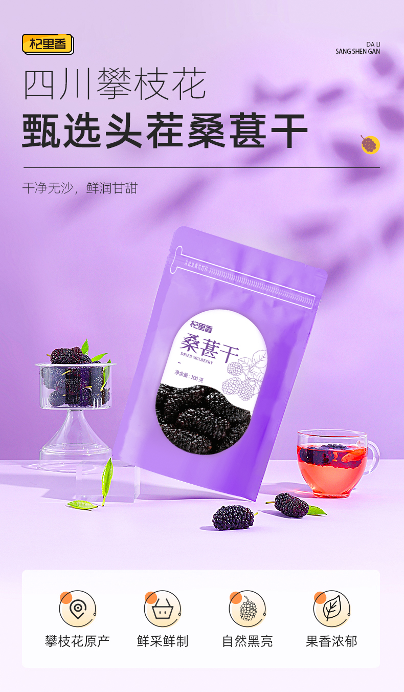 【10袋到手仅39.9元】【杞里香黑桑葚干无沙桑椹子100g/袋】泡茶泡酒非免洗即食桑葚旗舰店 自然生长 口感软甜 干净无沙