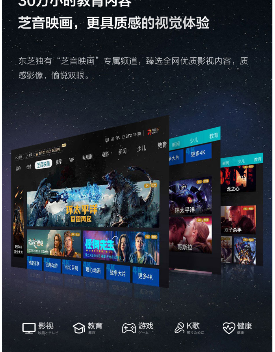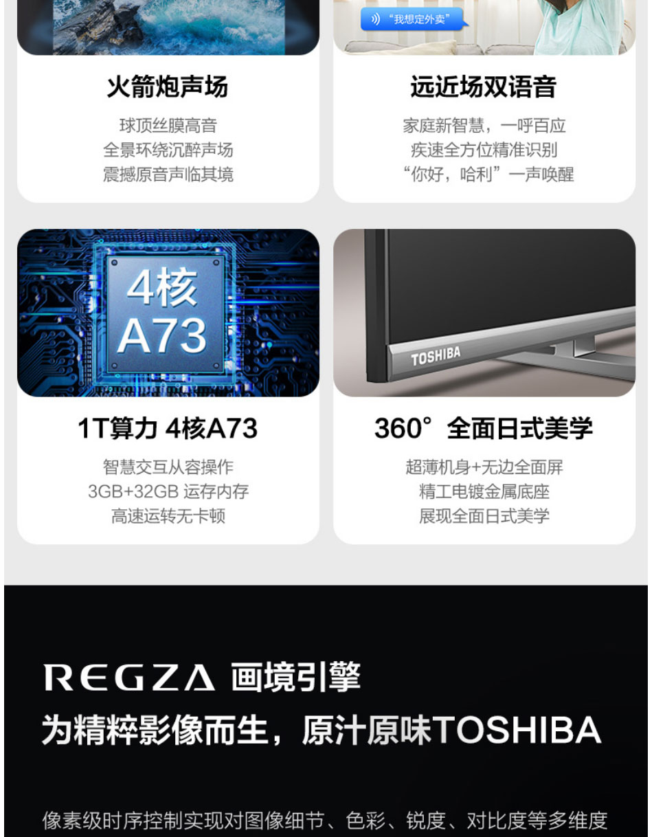 东芝(TOSHIBA)55M545F 55英寸 4K超高清 HDR 火箭炮声场 AI声控 3GB+32GB 无边全面屏 MEMC 液晶平板电视